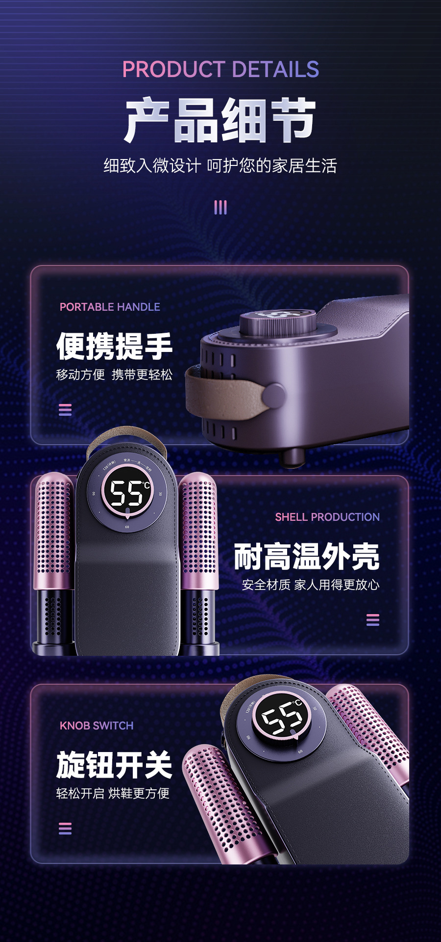 Новая сушилка для обуви 2025 года, умная, с фиолетовым светом, дезодорация, портативная, складная