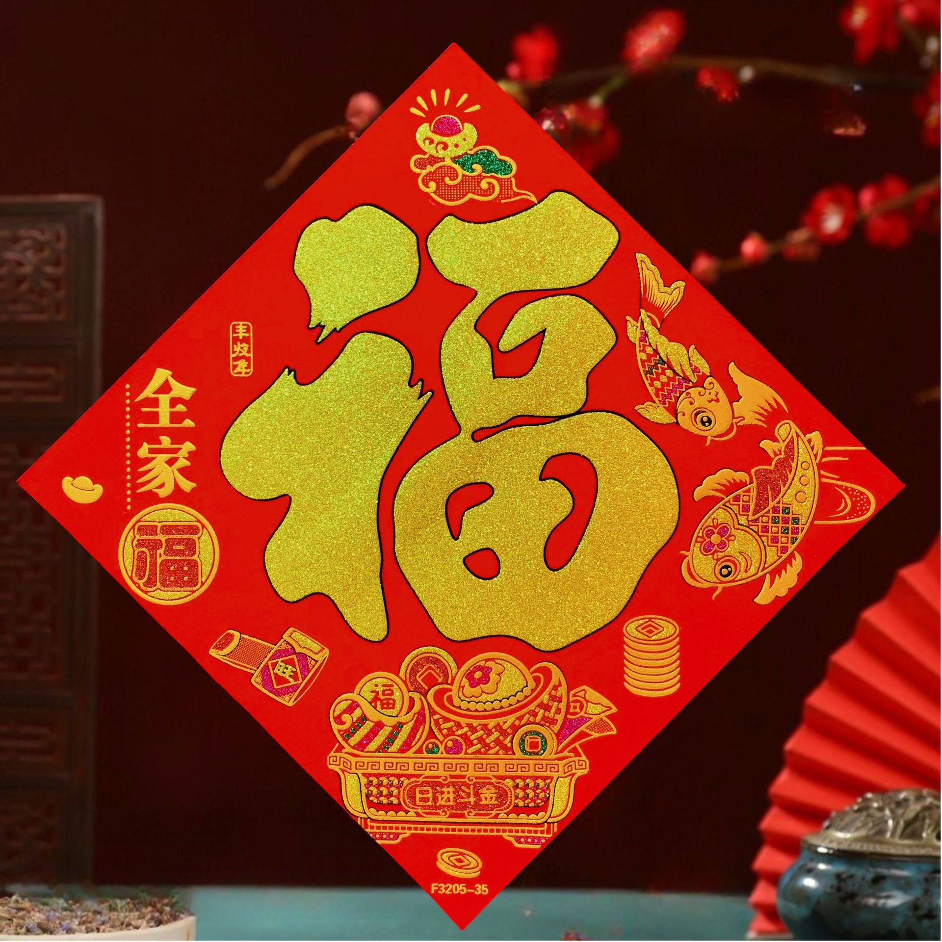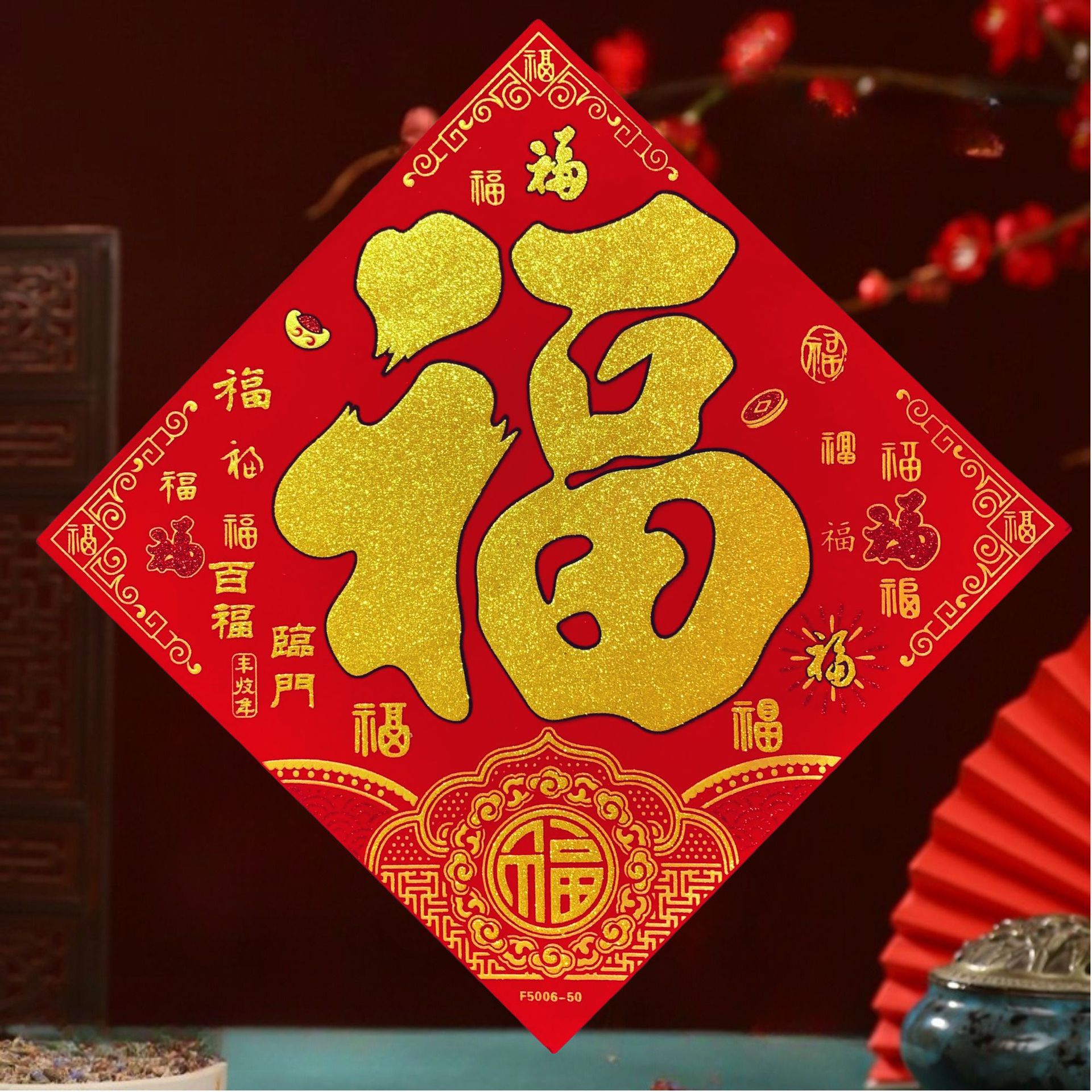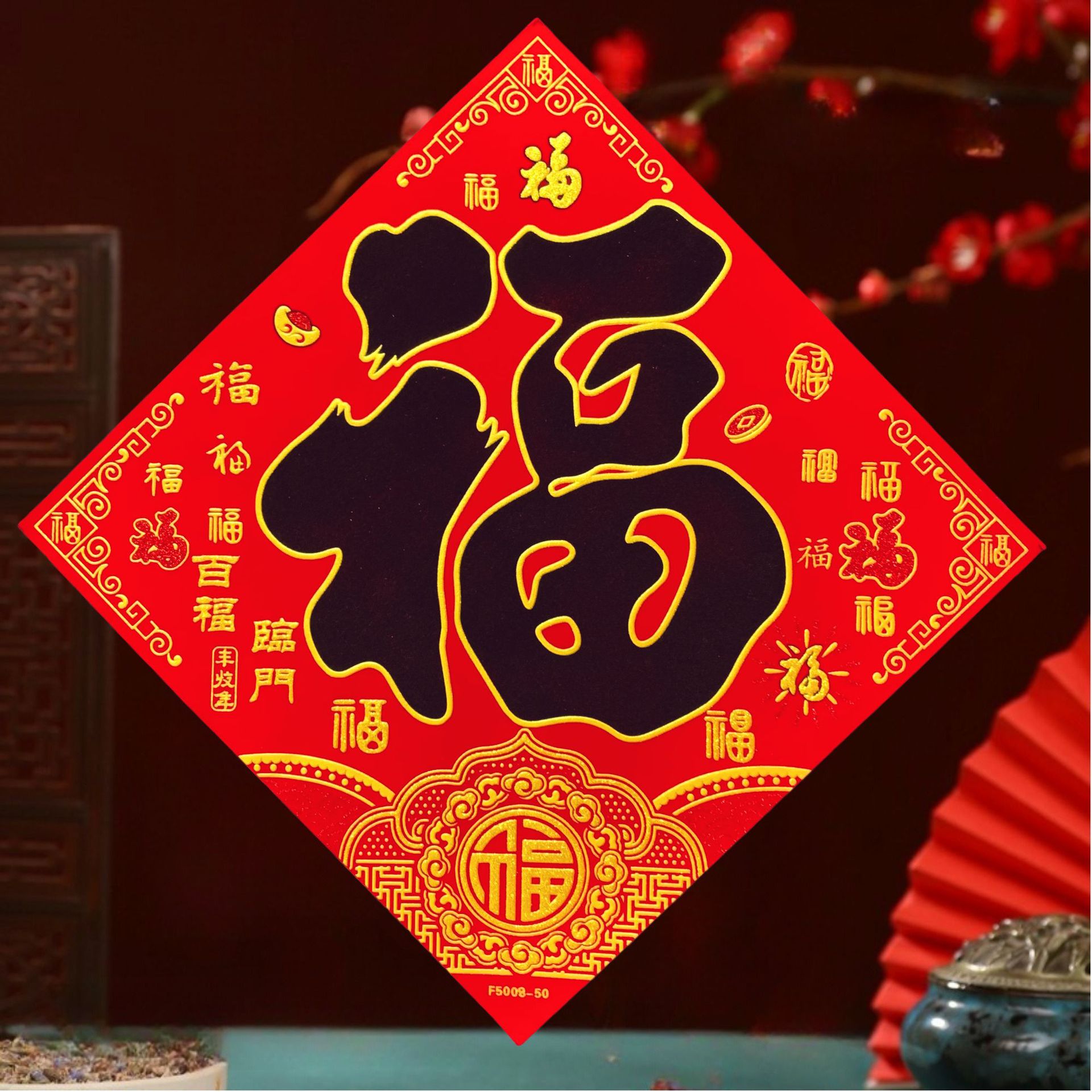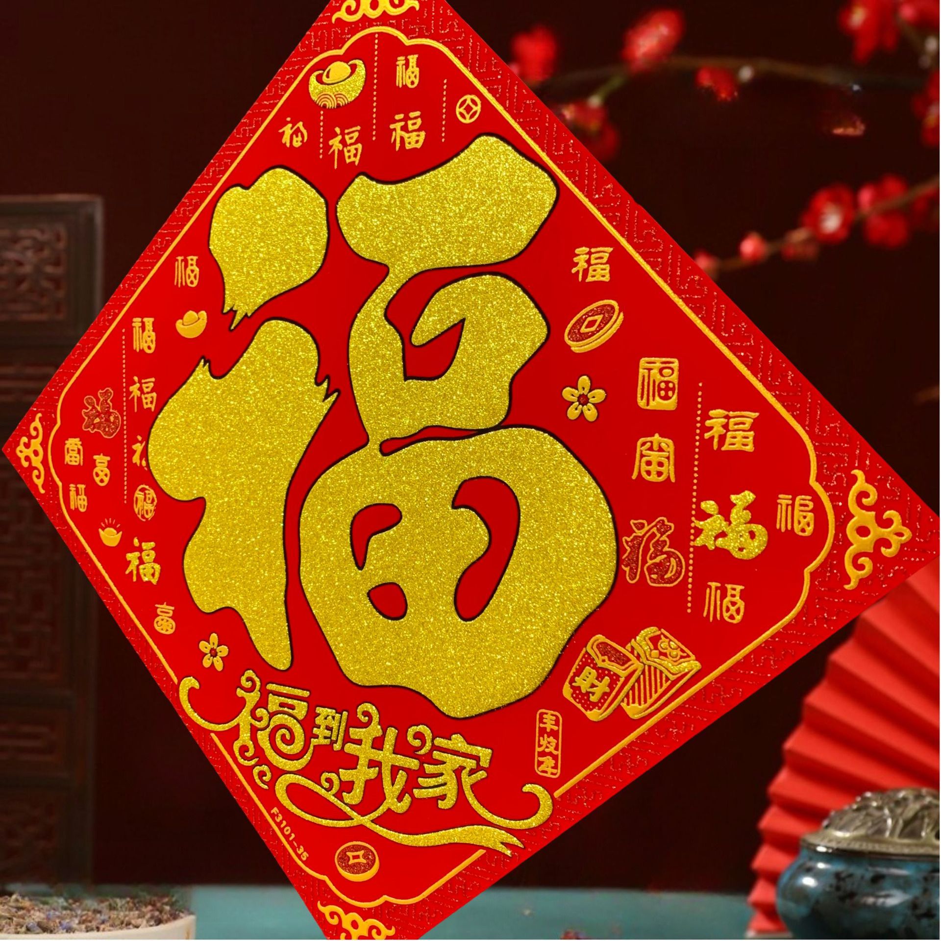 高端彩色绒布福字,全背胶加厚绒布纯手工发泡,.实际尺寸:40# 33.5cm,一件900张装,四个款式可混搭发货,整件拿清装私聊优惠,加厚绒布纯手工发泡6到7彩色工艺全背胶,款式高端大气上档次……实物比照片更漂亮更有质感,质量保证相信品牌的品质