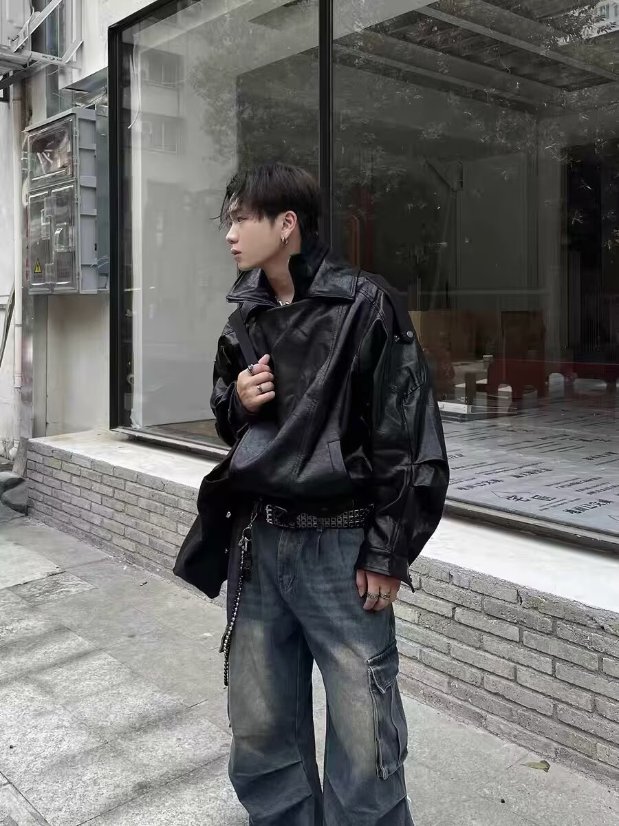 Куртка для мотоциклистов из овечьей кожи, свободная, PU кожа, новый высококлассный осенний плащ