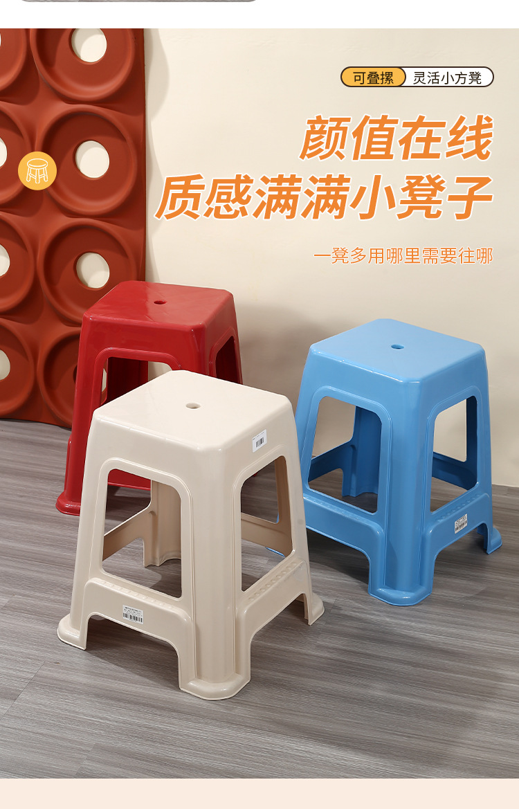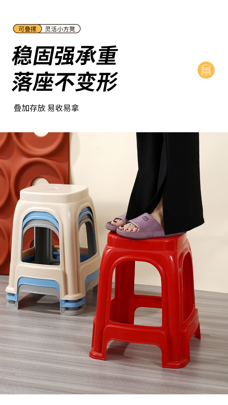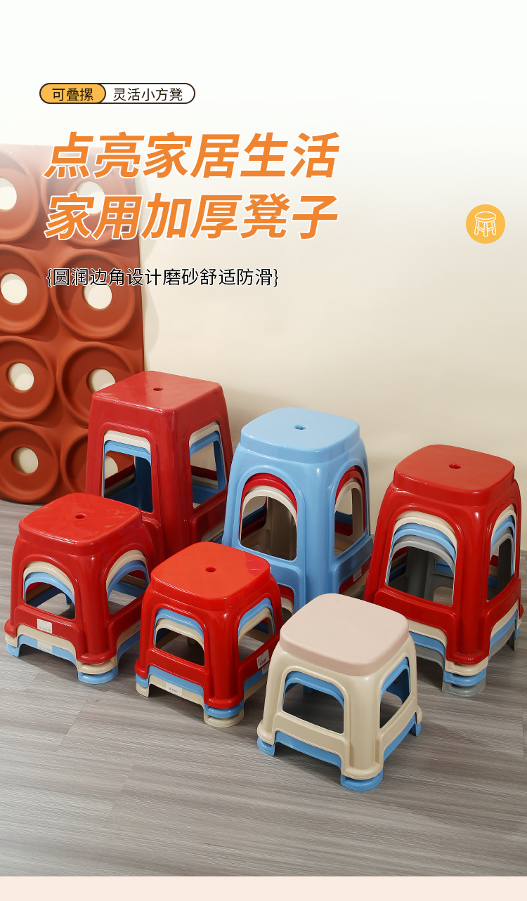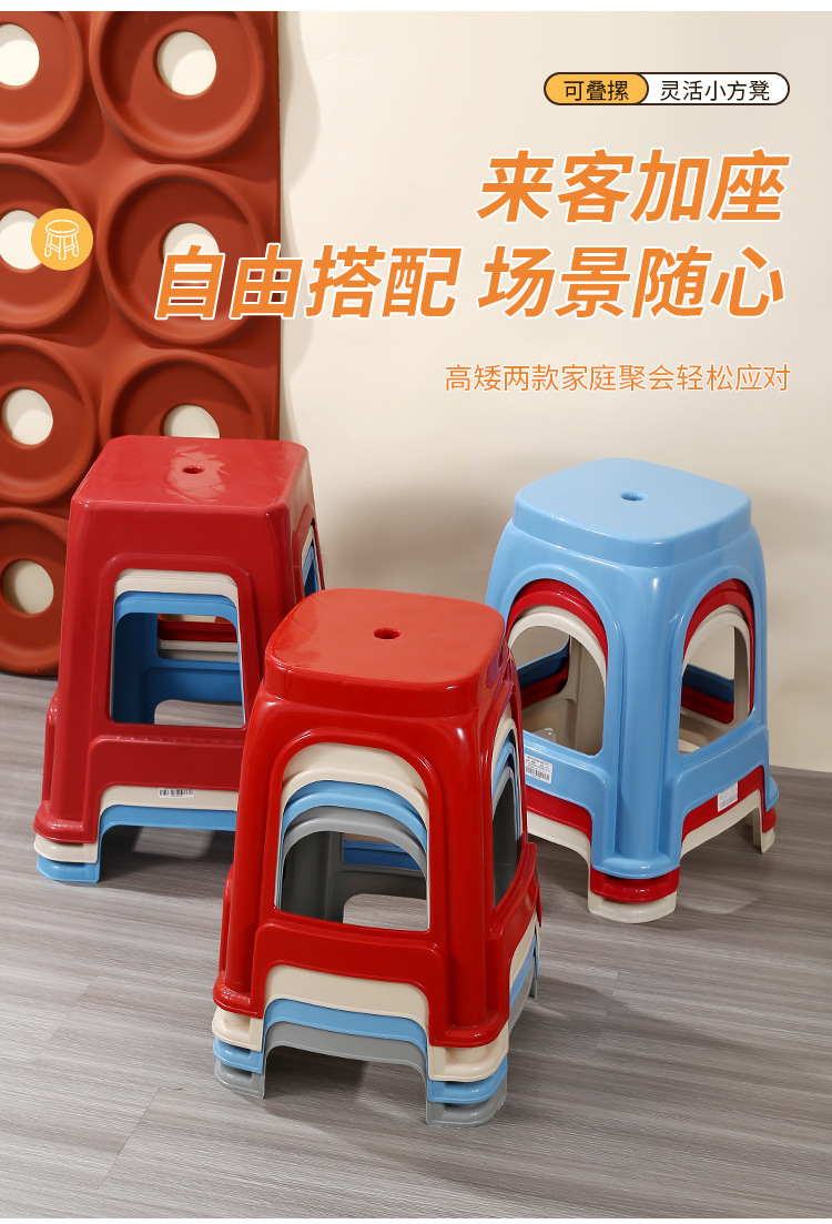Оптовая продажа утолщенного пластикового стула, скамейка для дома, коммерческий пластиковый квадратный стул, утолщенный пластиковый стул, пластиковый высокий стул