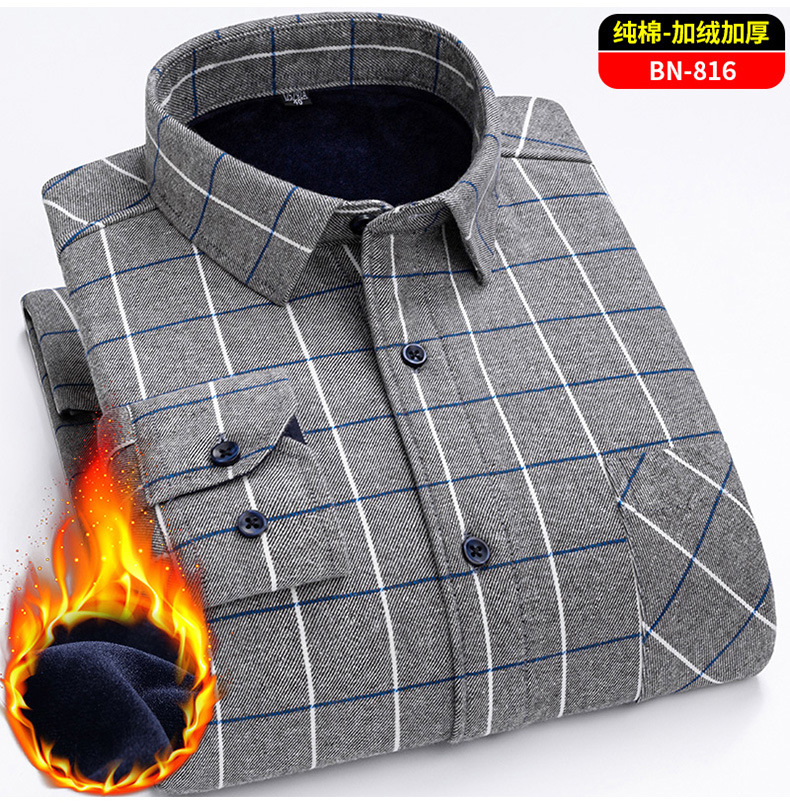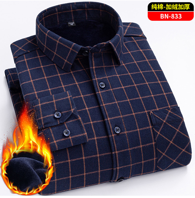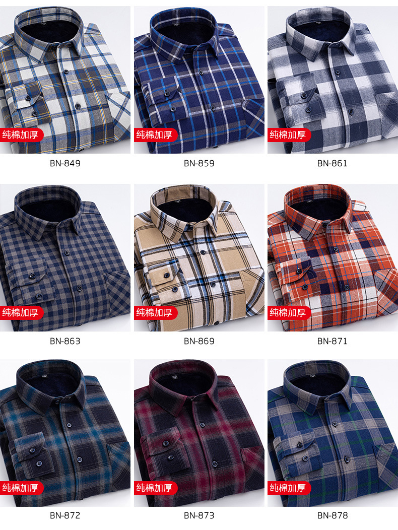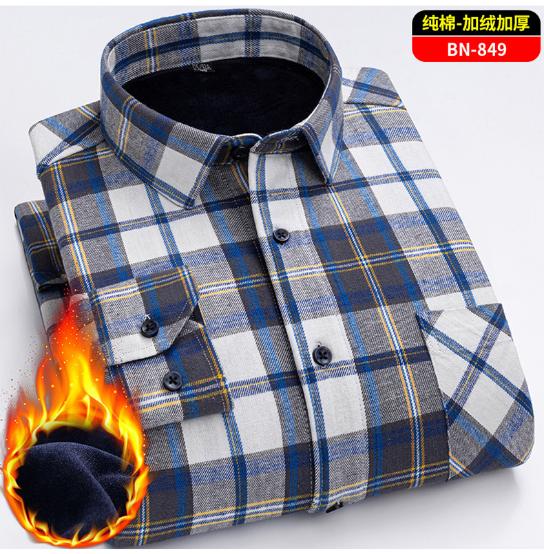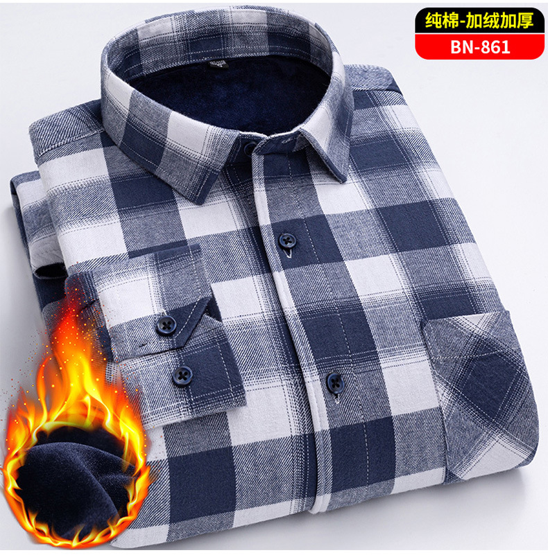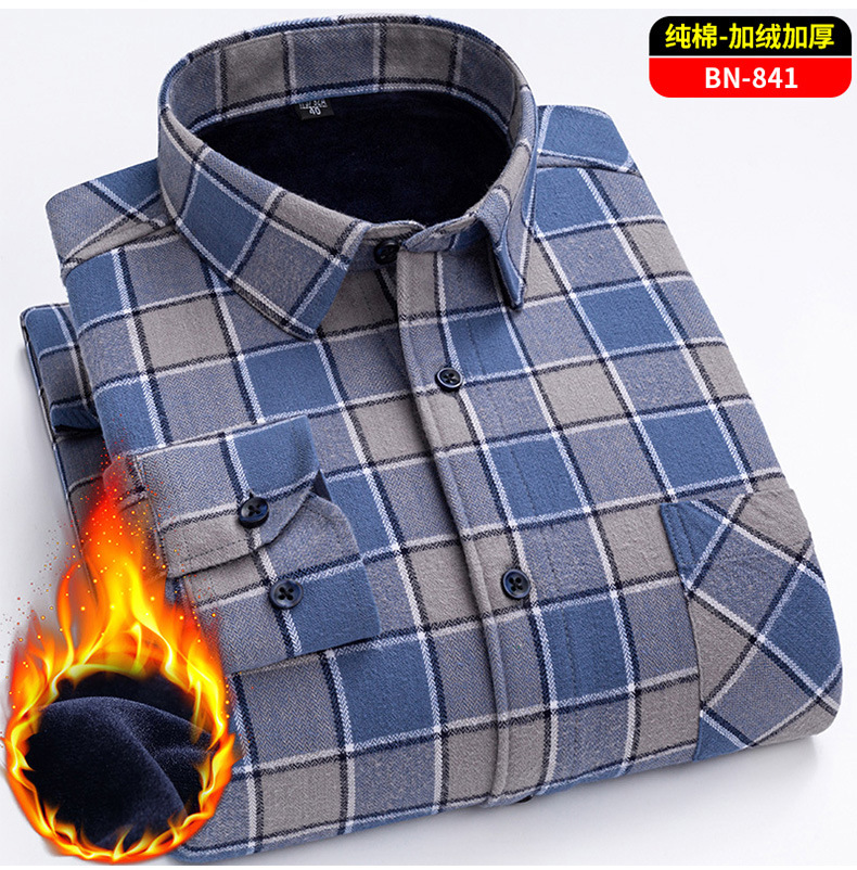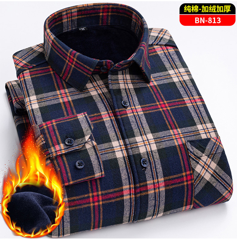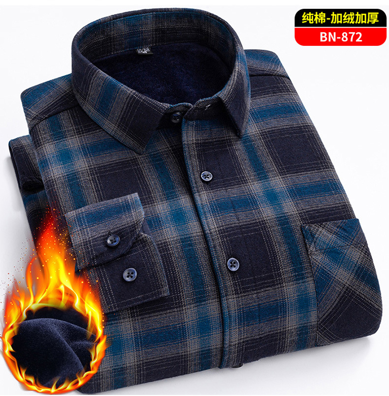 Теплая рубашка из 100% хлопка для мужчин осенью и зимой, повседневная флисовая утолщенная рубашка в клетку