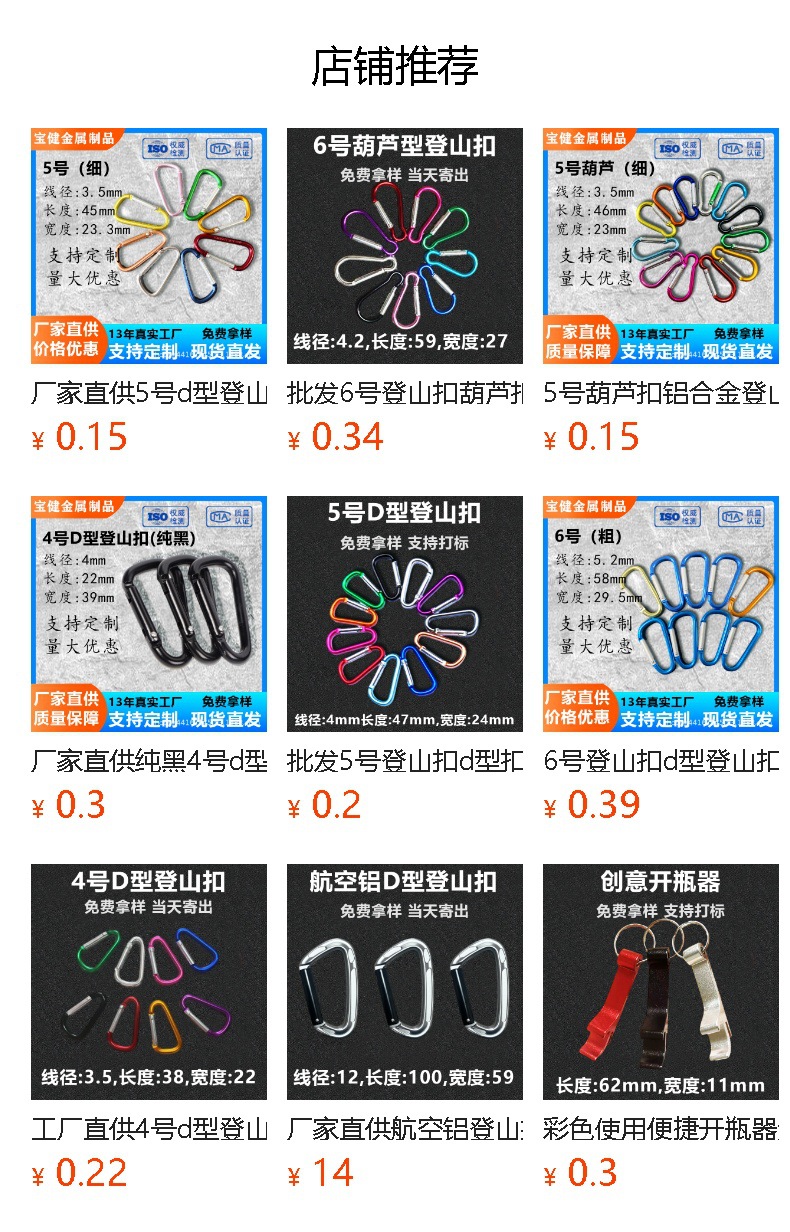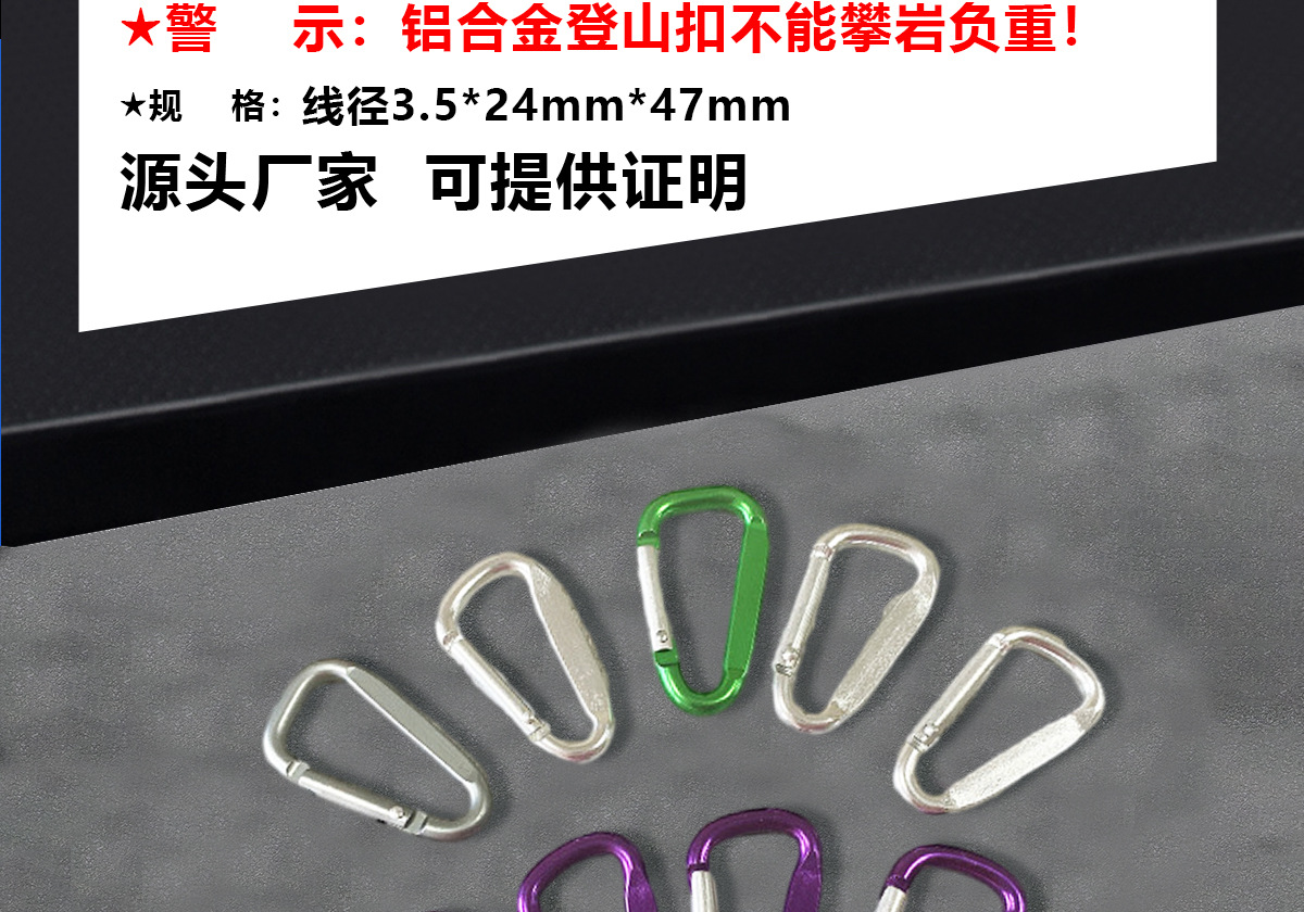 Номер товара No. 5 flat carabiner wire diameter 4.0mm*width 24.2mm*length 46.7mm