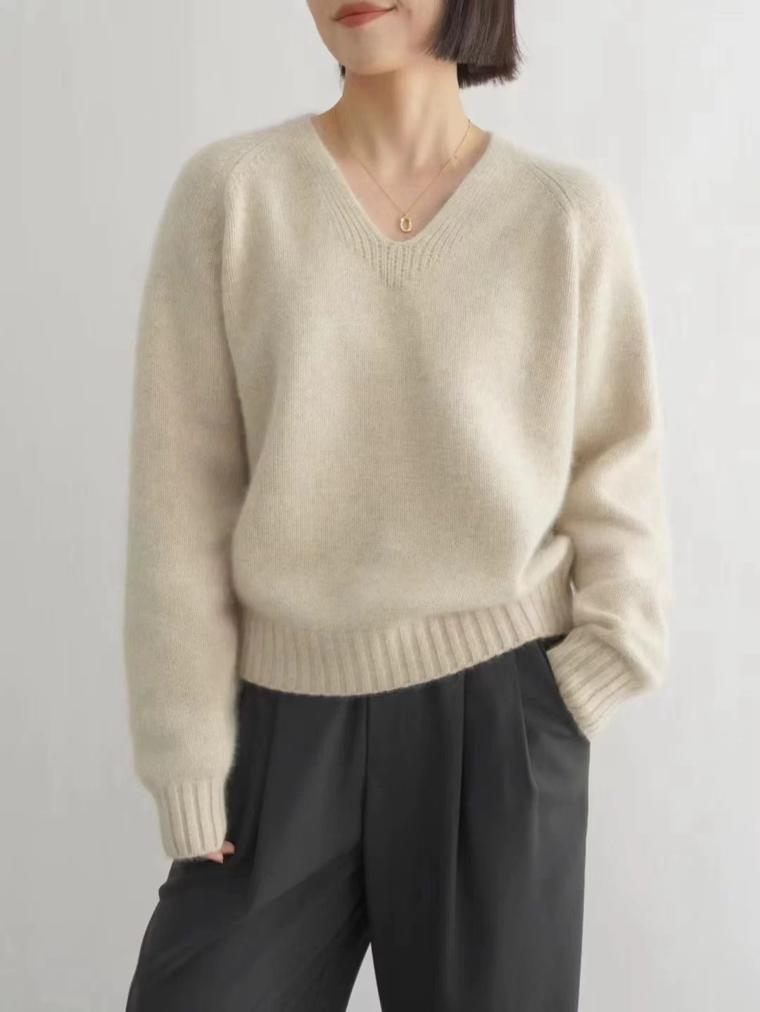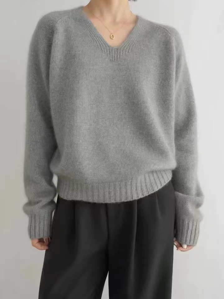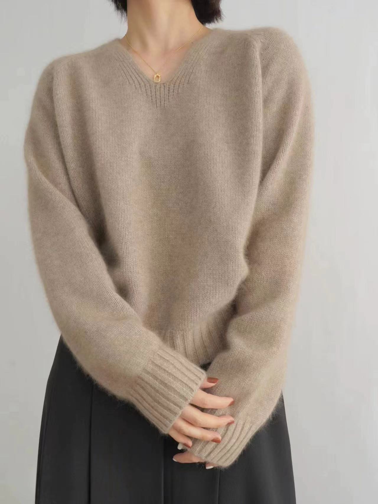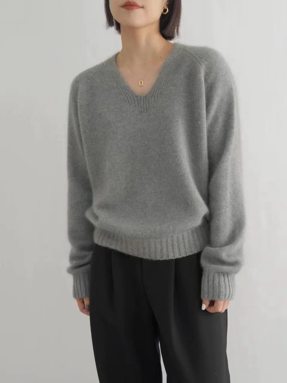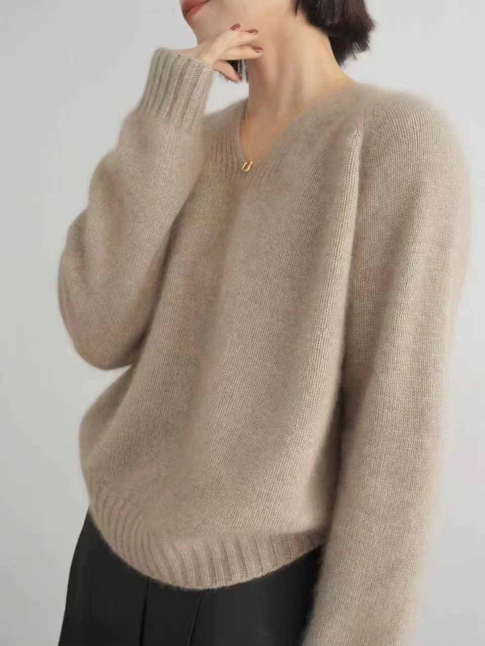 Осень и зима V-образный вырез 100% шерсть свитер с длинными рукавами пуловер женский свободный стройнящий кашемировый однотонный повседневный вязаный базовый свитер