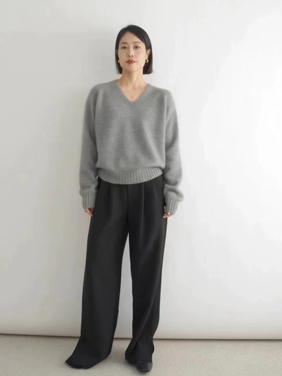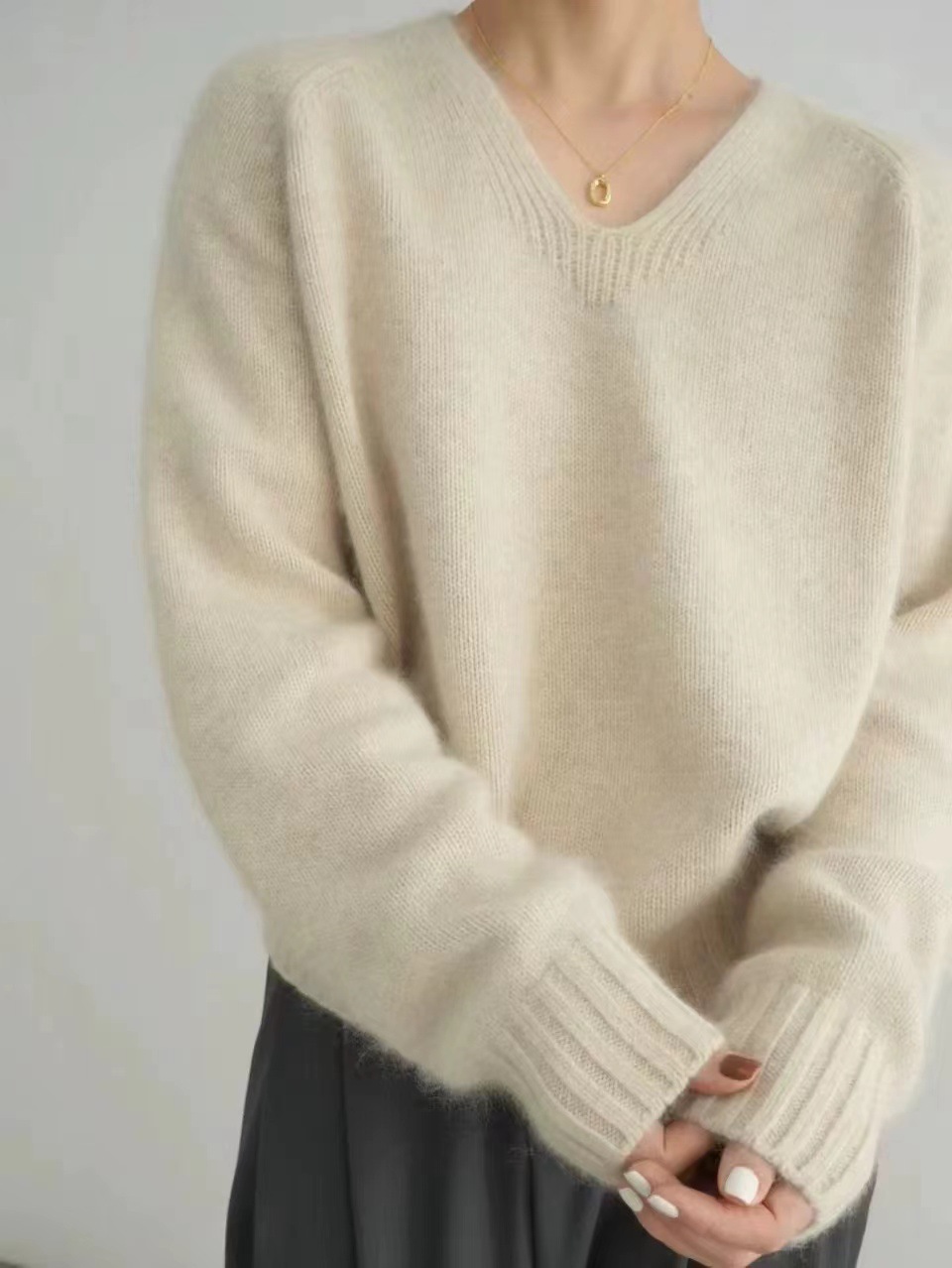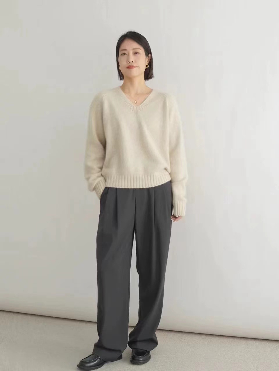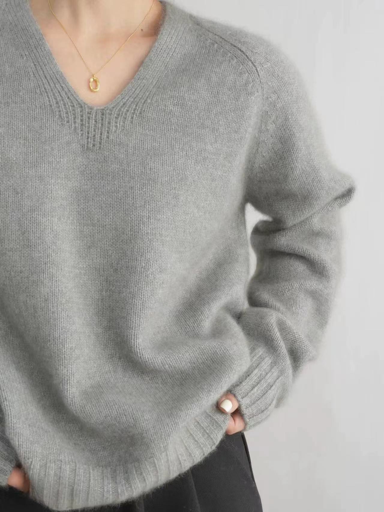 Осень и зима V-образный вырез 100% шерсть свитер с длинными рукавами пуловер женский свободный стройнящий кашемировый однотонный повседневный вязаный базовый свитер