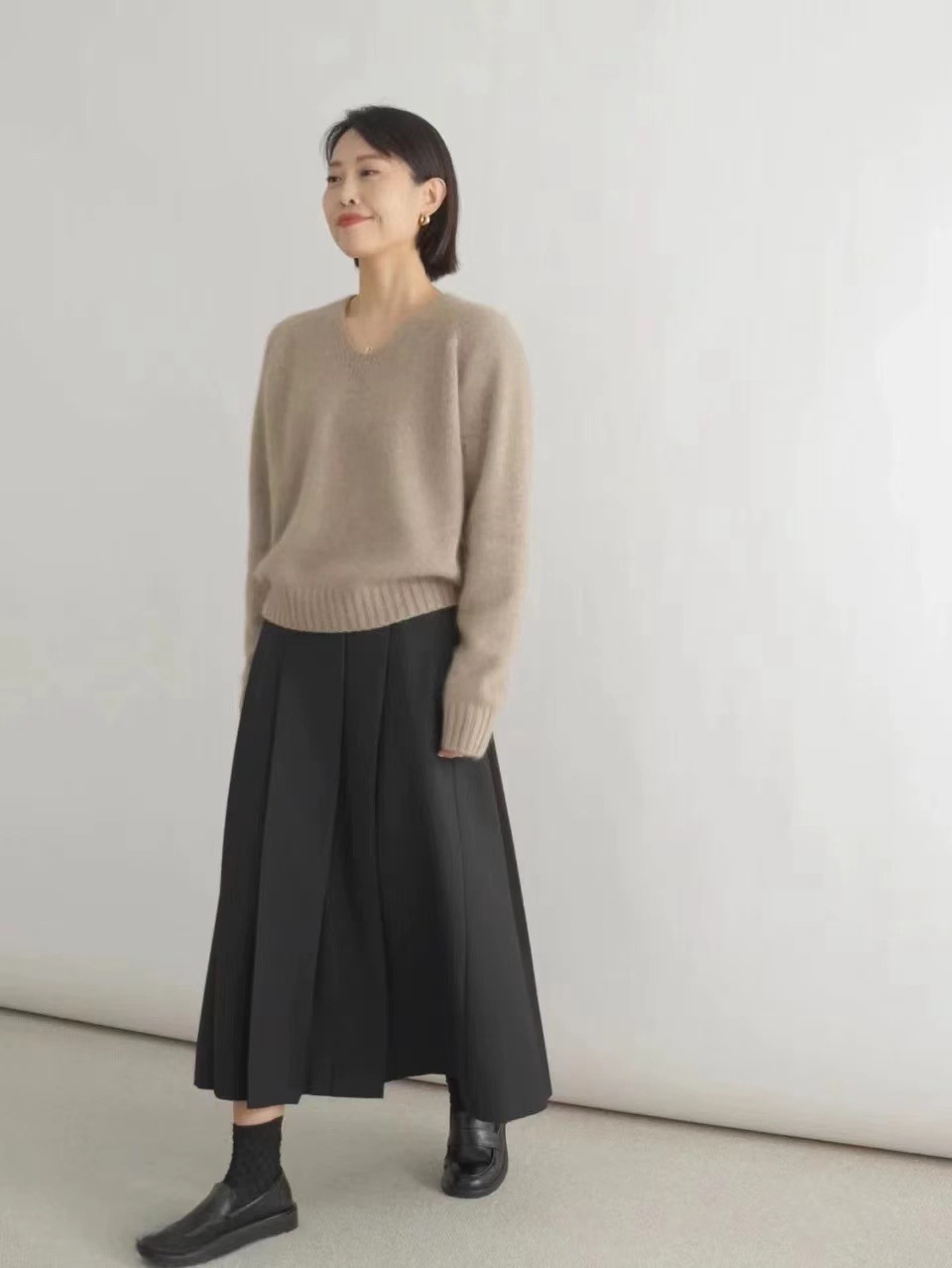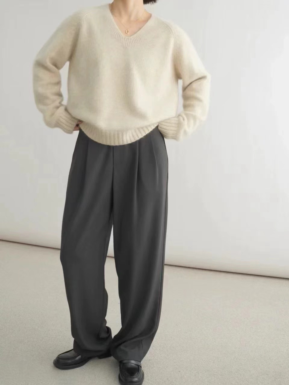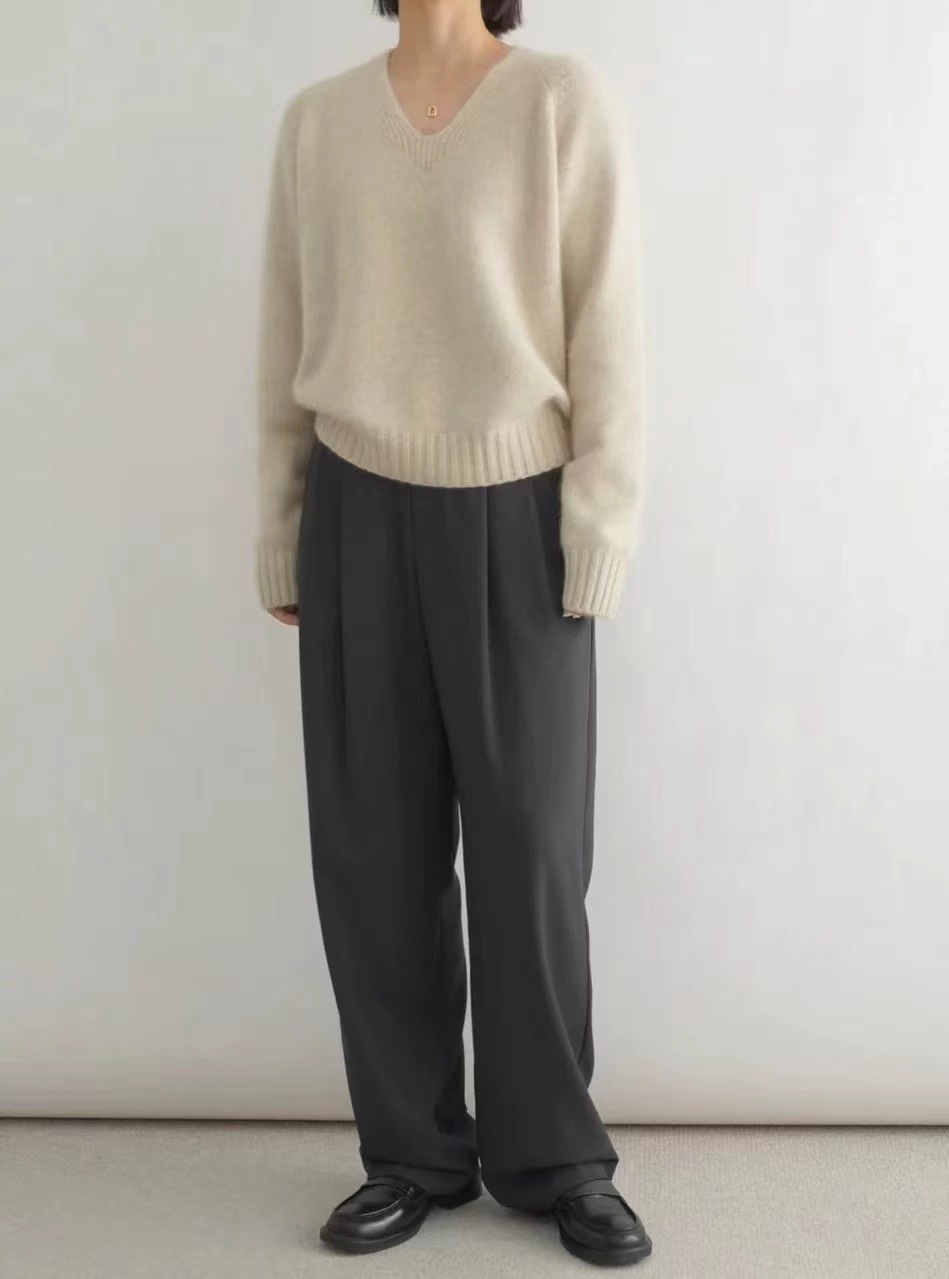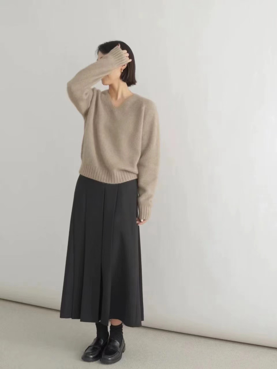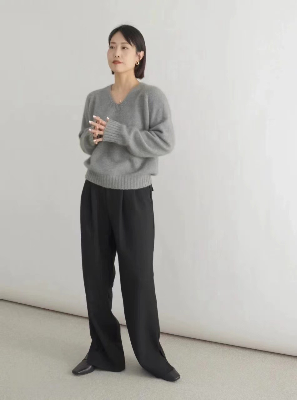 Осень и зима V-образный вырез 100% шерсть свитер с длинными рукавами пуловер женский свободный стройнящий кашемировый однотонный повседневный вязаный базовый свитер