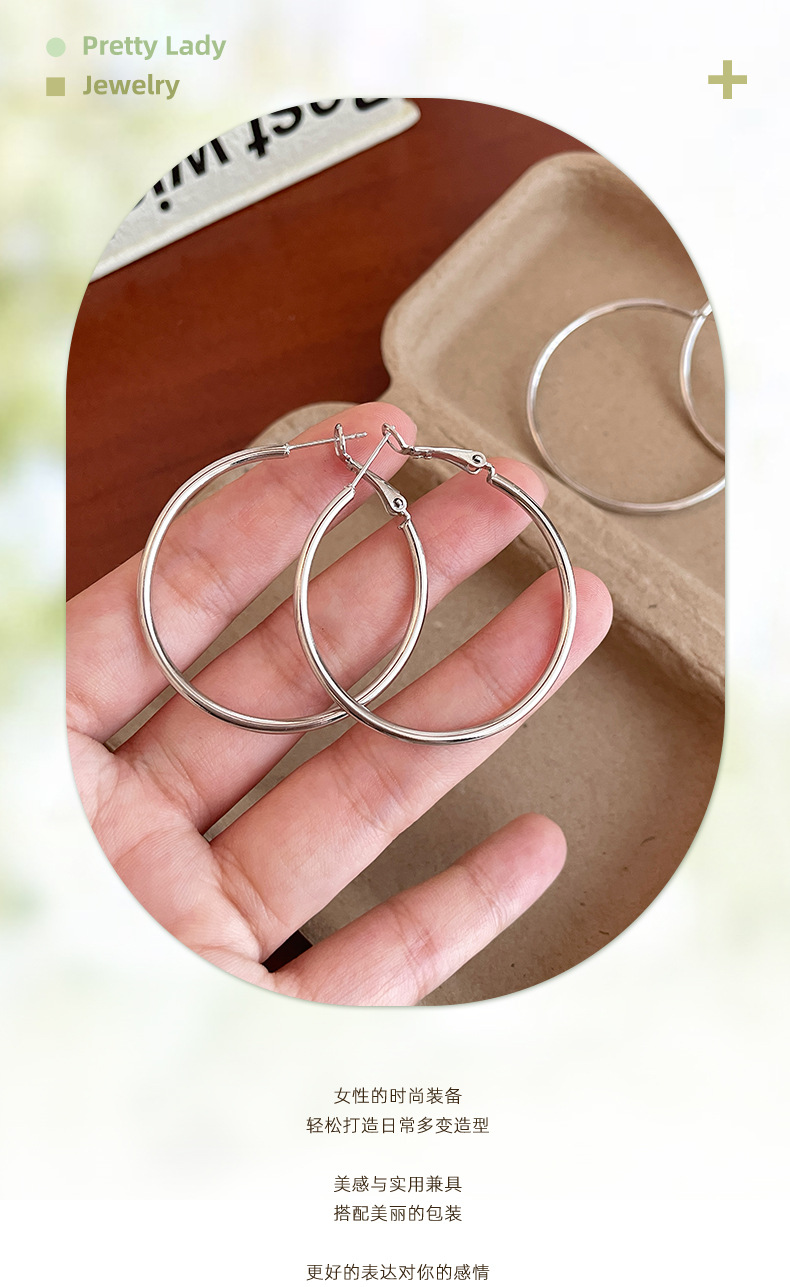 Серьги в холодном стиле, простые геометрические круглые серьги из серебра для женщин, преувеличенные повседневные серьги