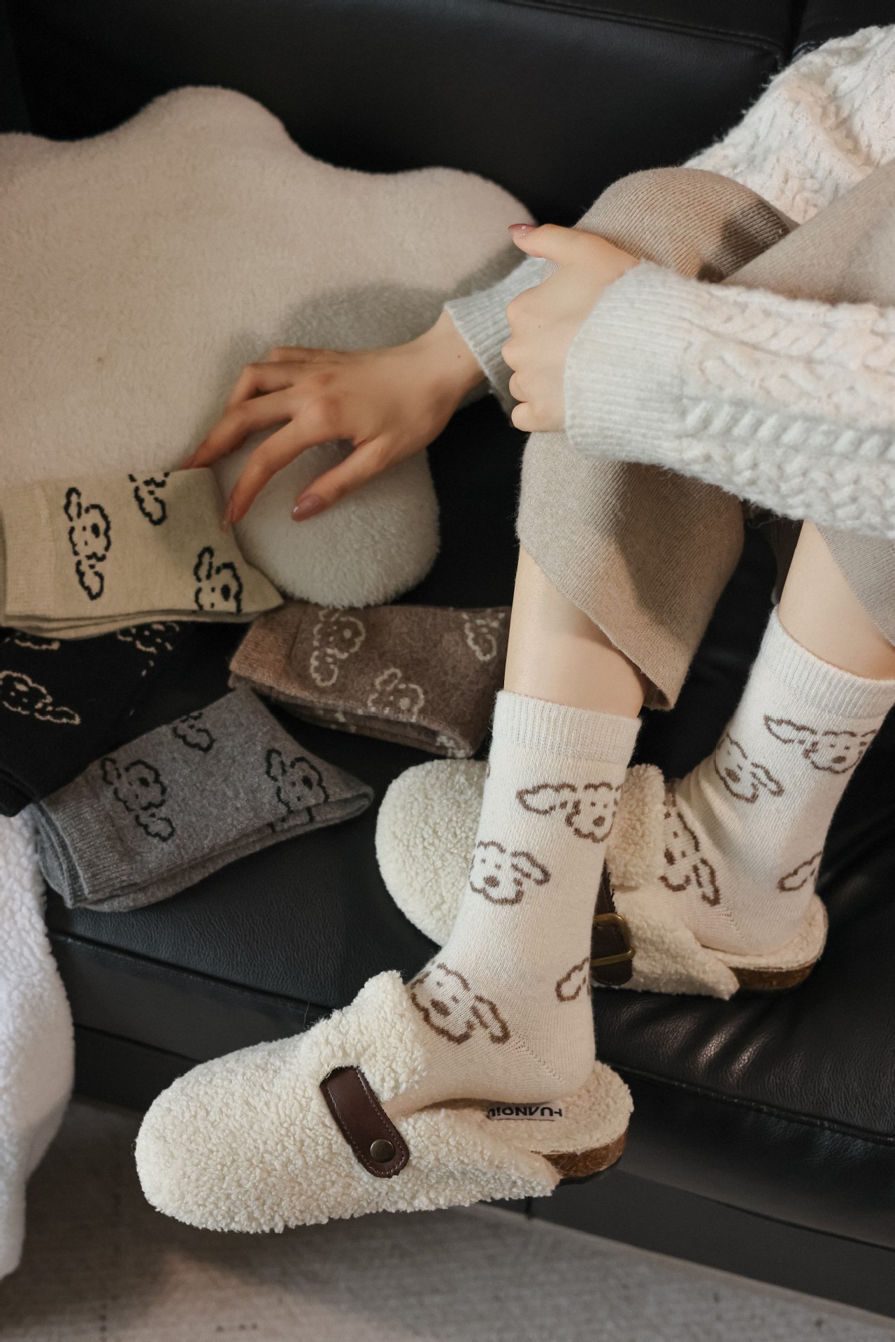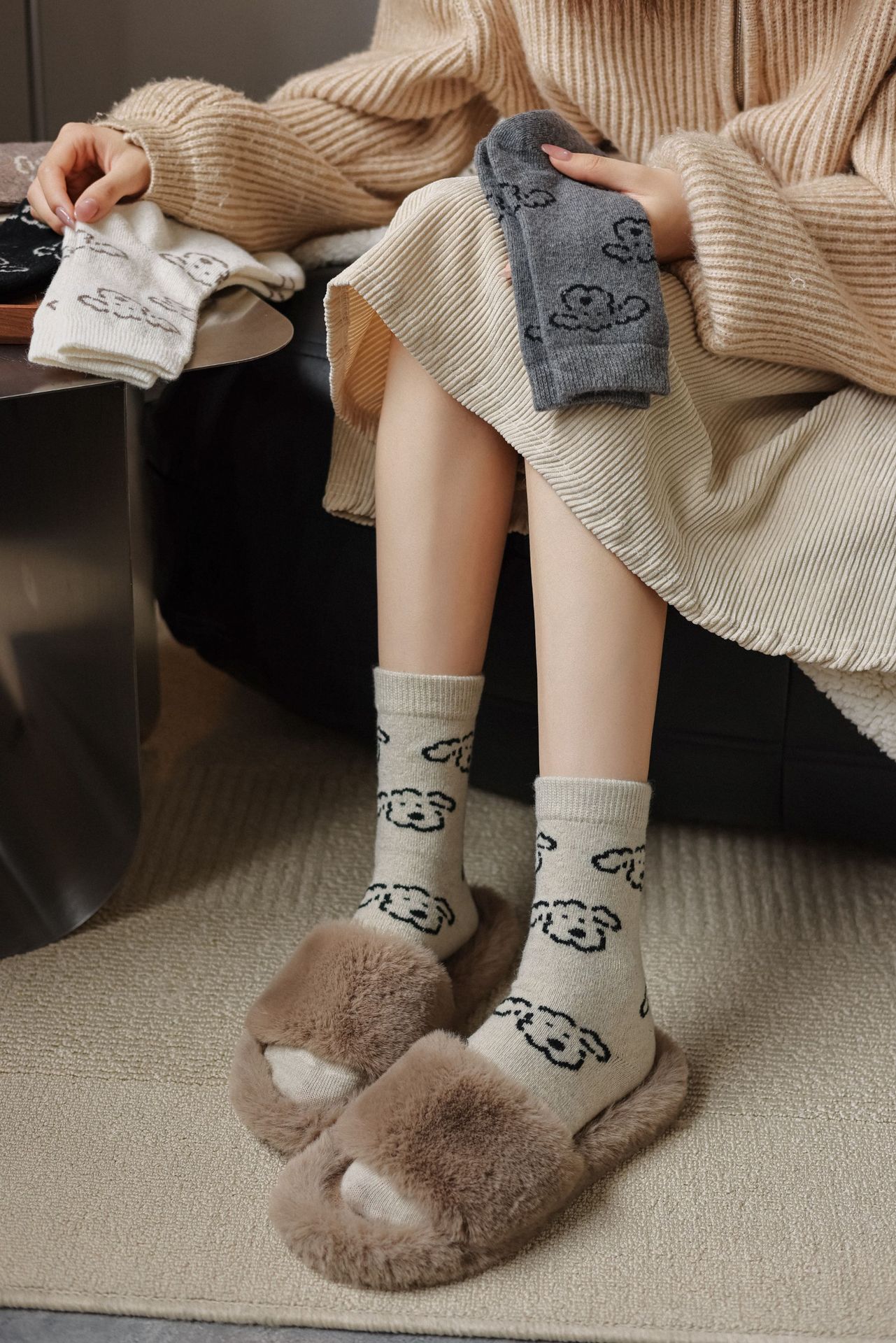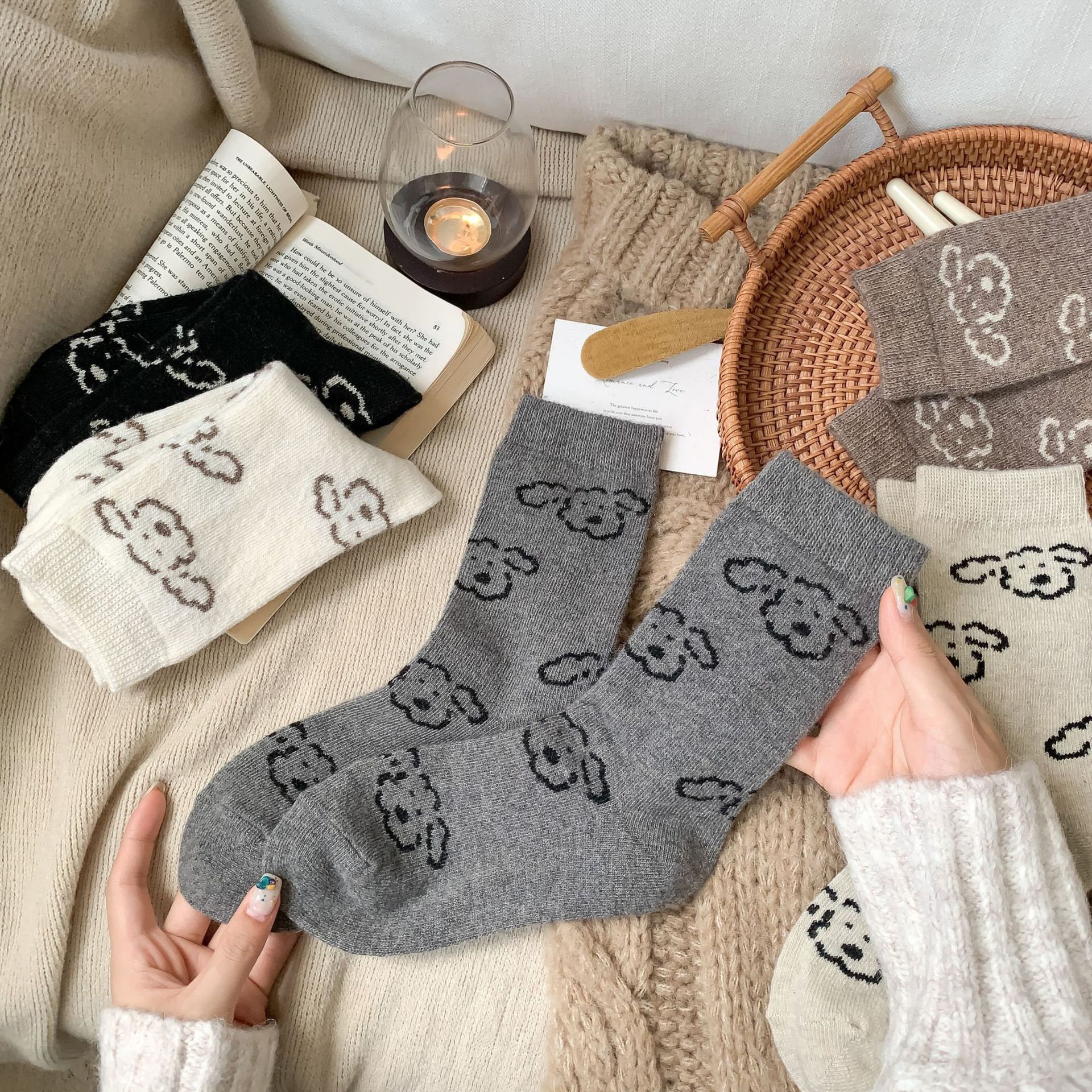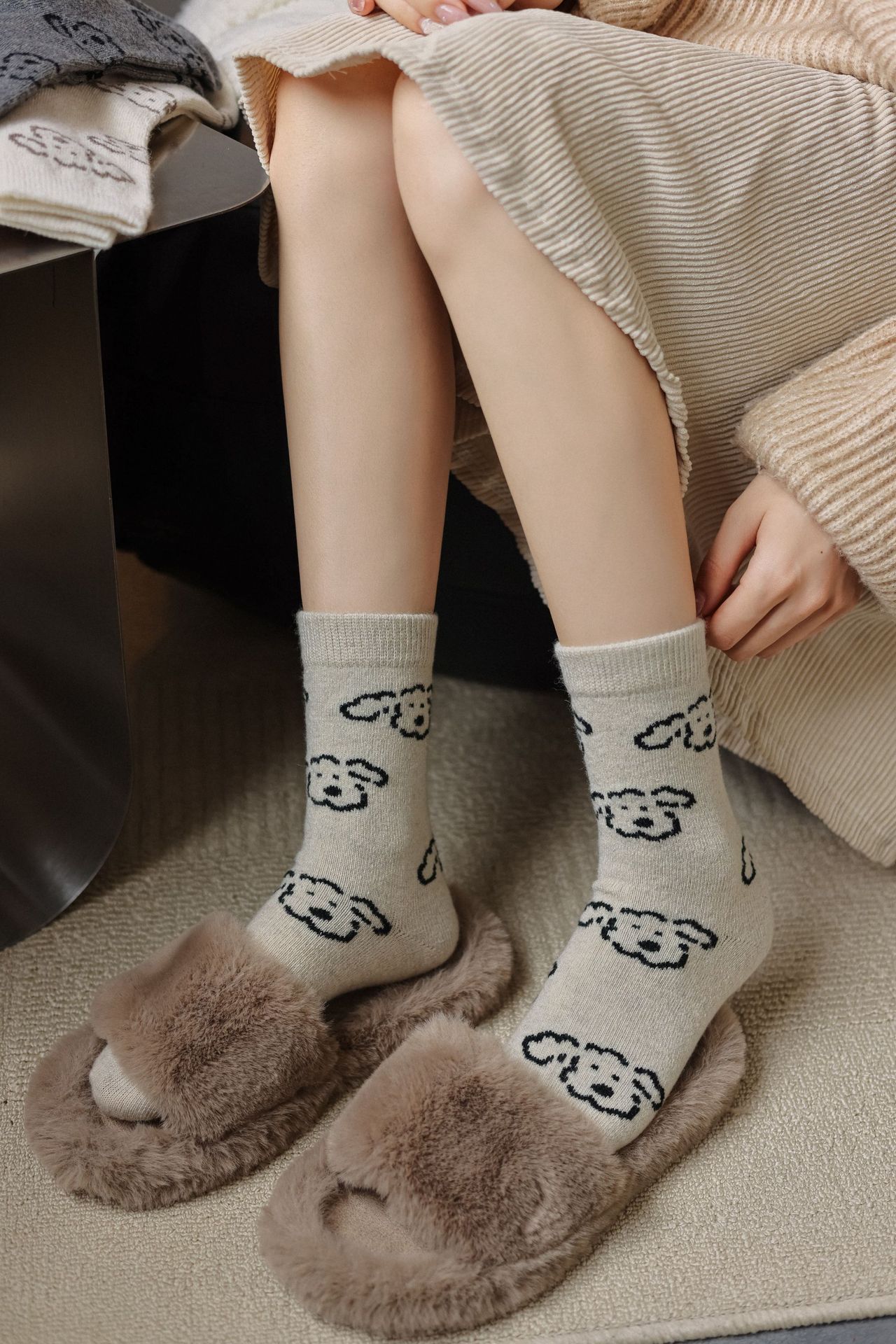 Шершащие носки с щенком, осень и зима, утолщенные, милые, для обуви Birkenstock