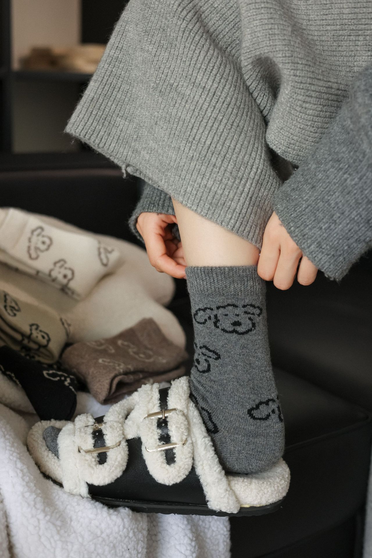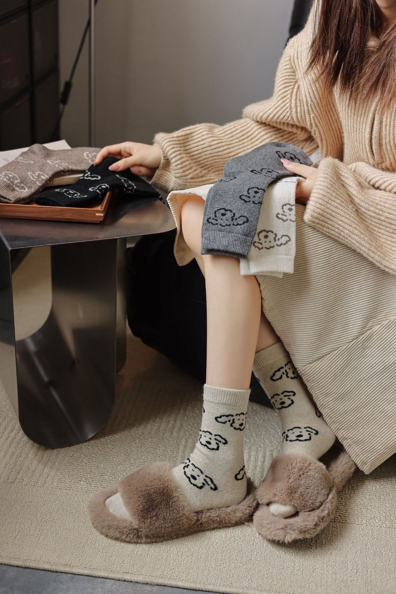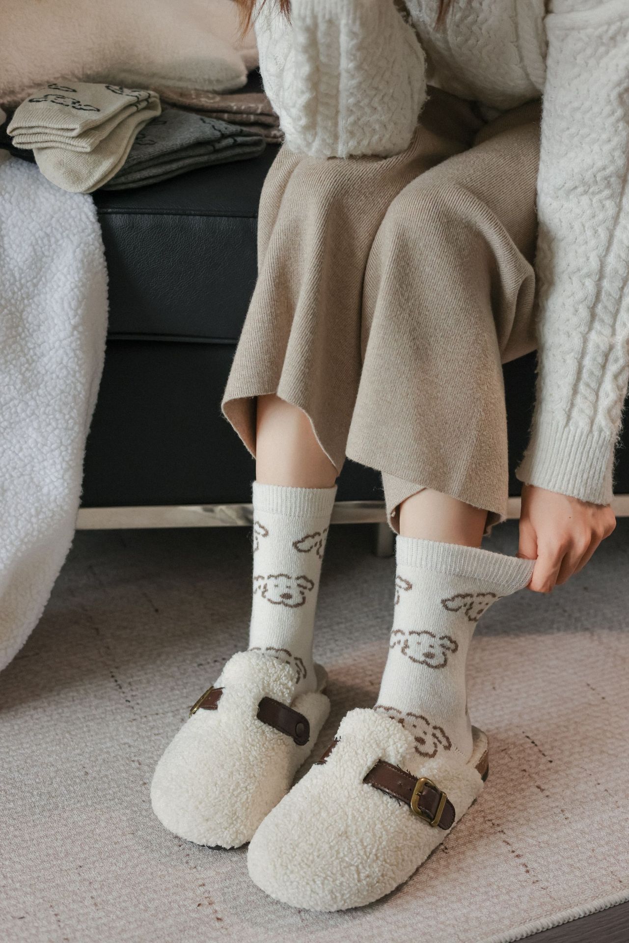 Шершащие носки с щенком, осень и зима, утолщенные, милые, для обуви Birkenstock
