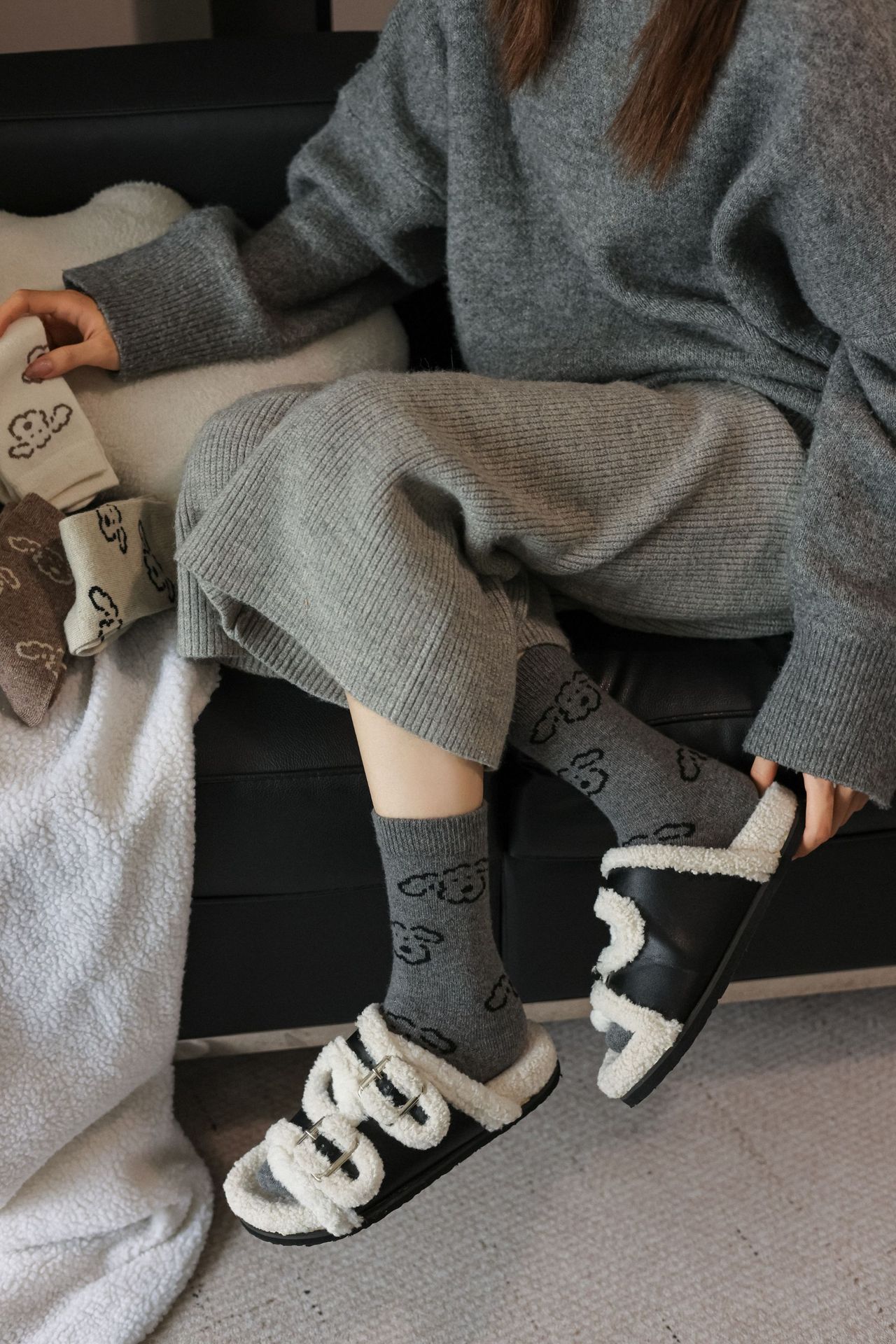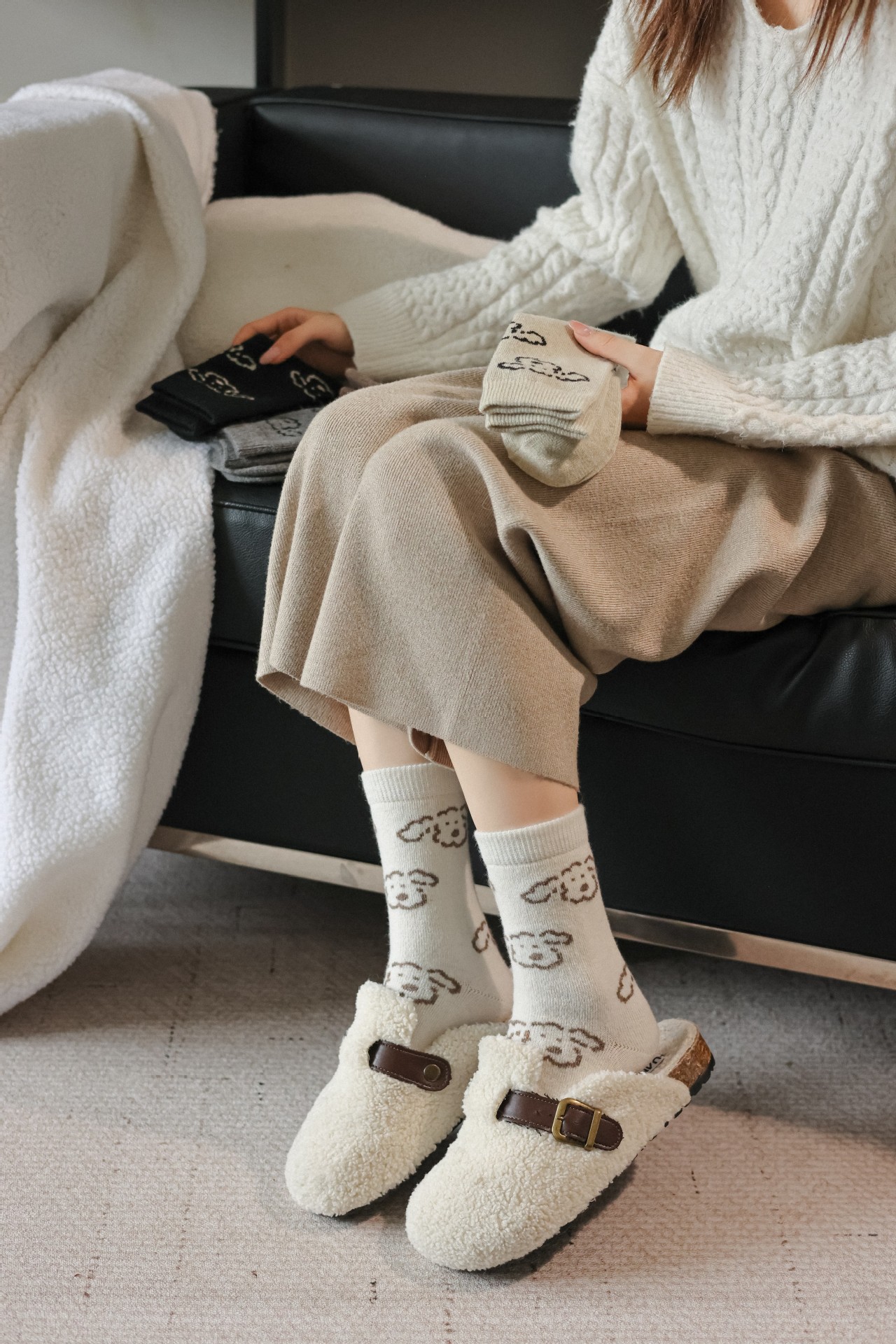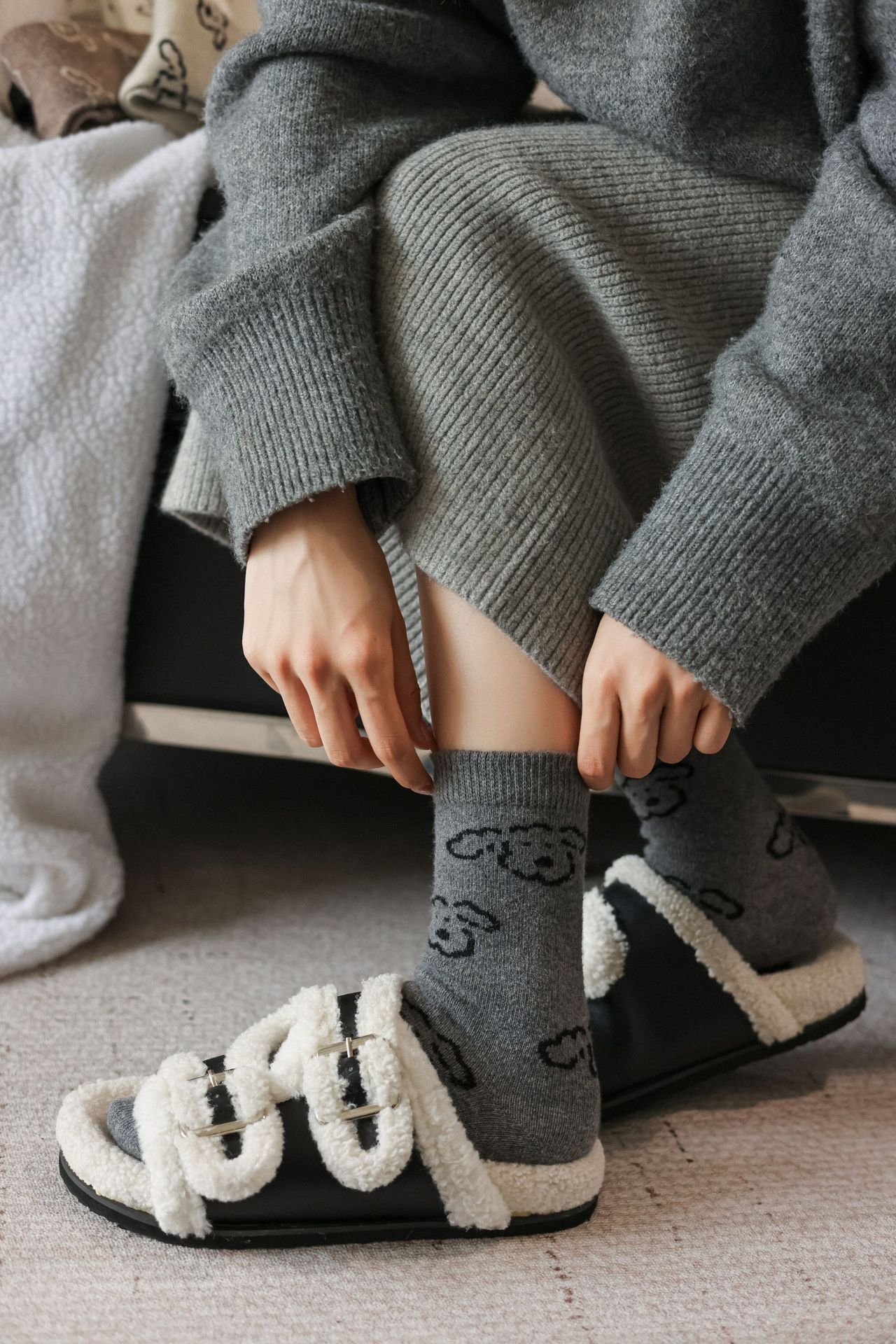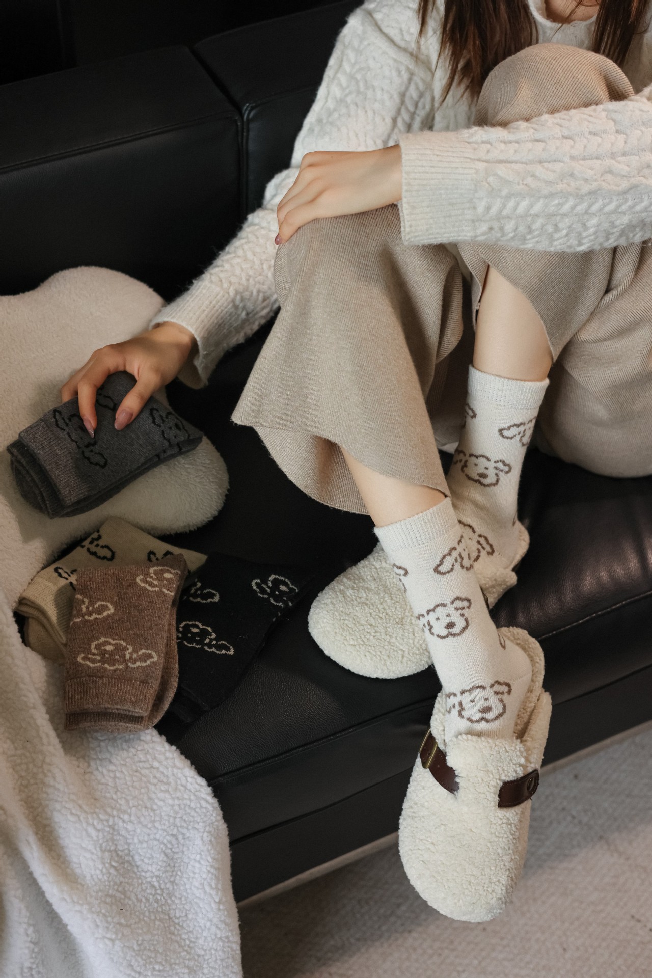 Шершащие носки с щенком, осень и зима, утолщенные, милые, для обуви Birkenstock