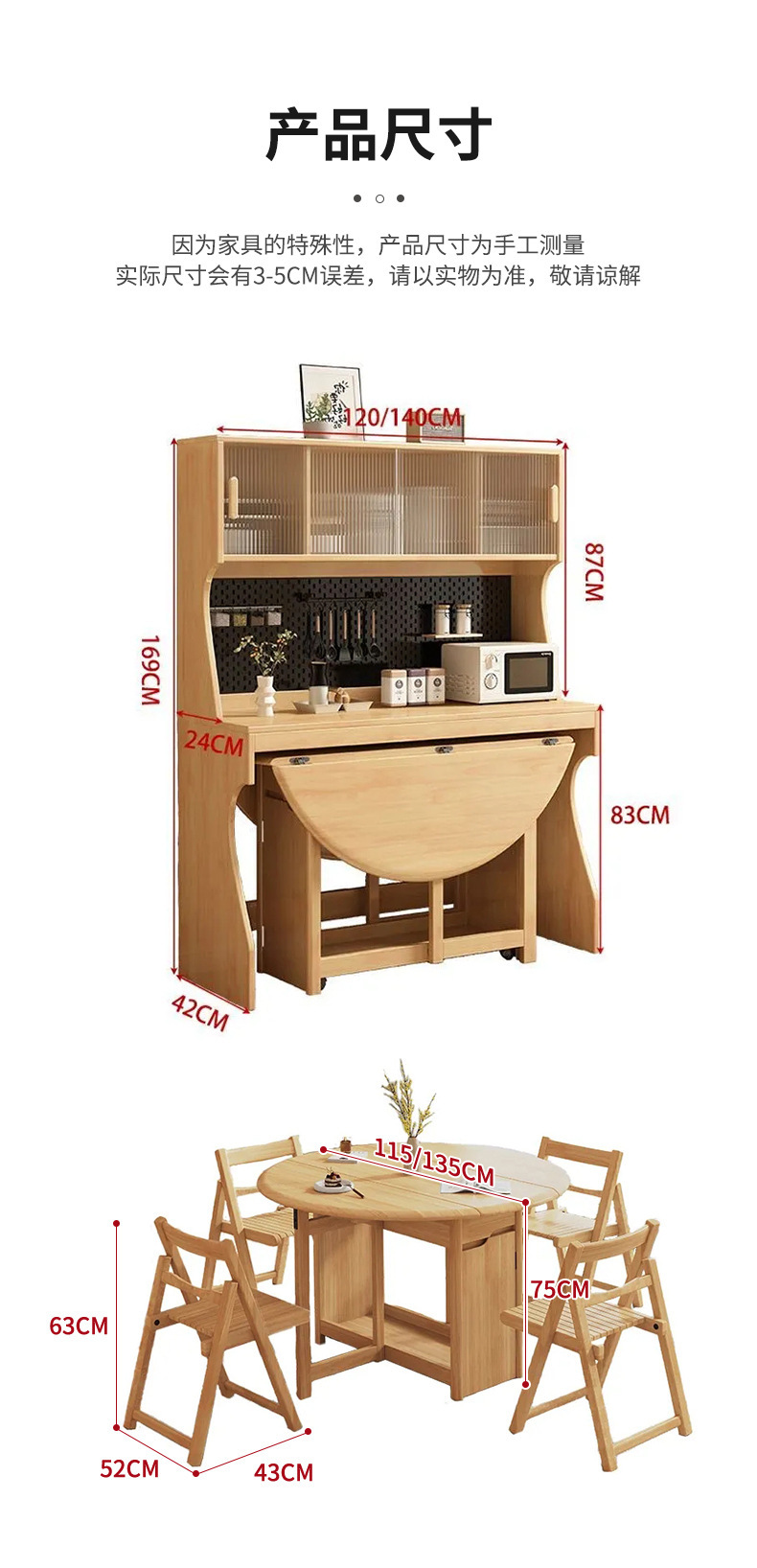 📦 | 【1.2m】 sideboard + 1.15m folding round table + 4 chairs | Wood color | ¥3245.0 / ≈ 39 471 ₽ | 1688 | 5783049426909 | |