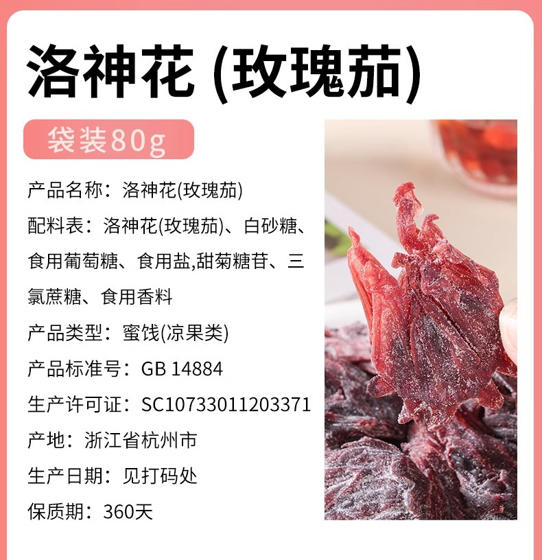 📦 | Roselle (rose eggplant) 80g*1 bag | 1шт: ¥14.80, 3шт: ¥13.80, 100шт: ¥12.80 | 978 | 5613751412699 |