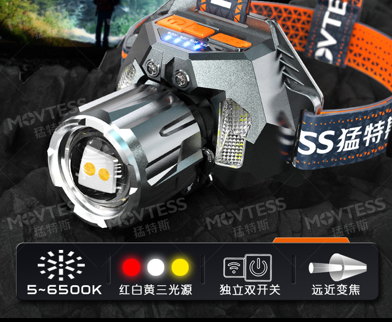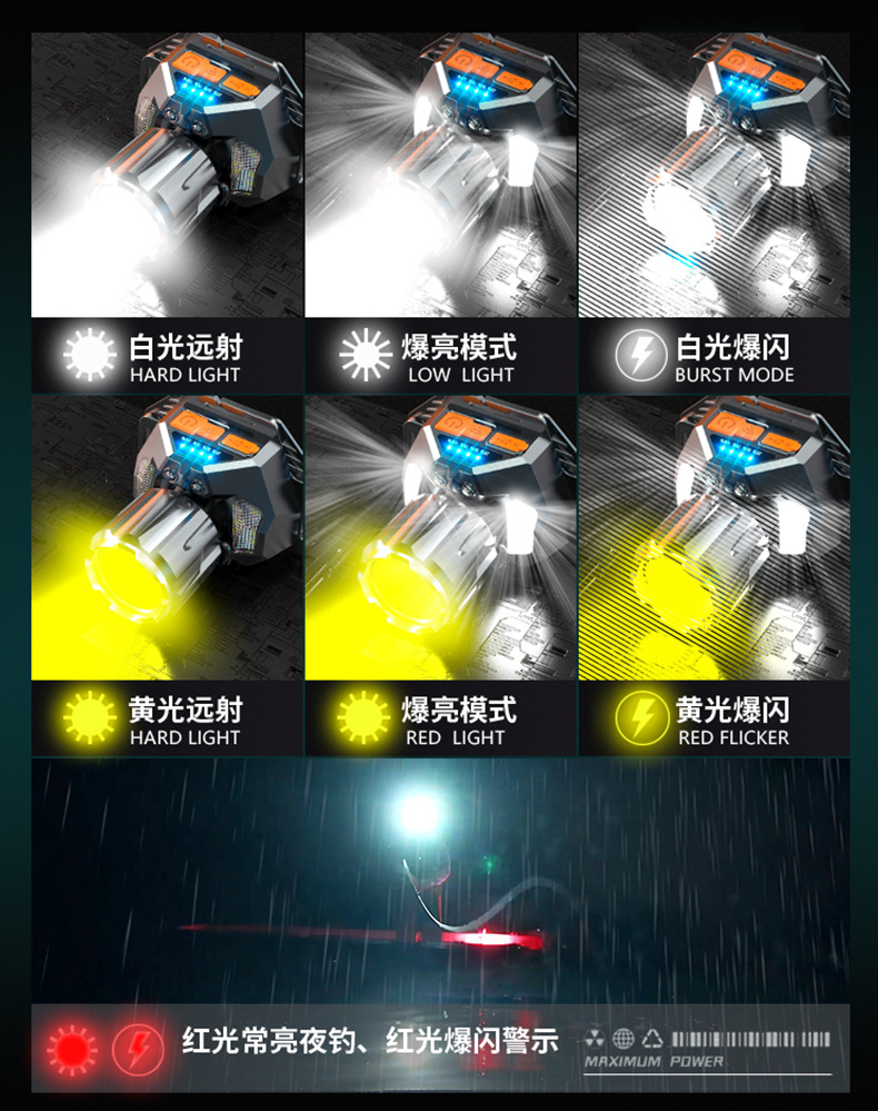 LED налобный фонарь сильный свет зарядка на улице ночь рыбалка дальний свет супер яркий налобный фонарь шахтера