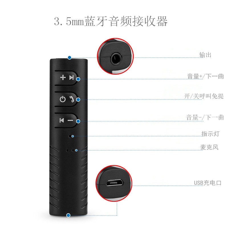 产品功能:蓝牙接收器/车载蓝牙接收器/汽车蓝牙接收器/AUX蓝牙接收器/音频适配器