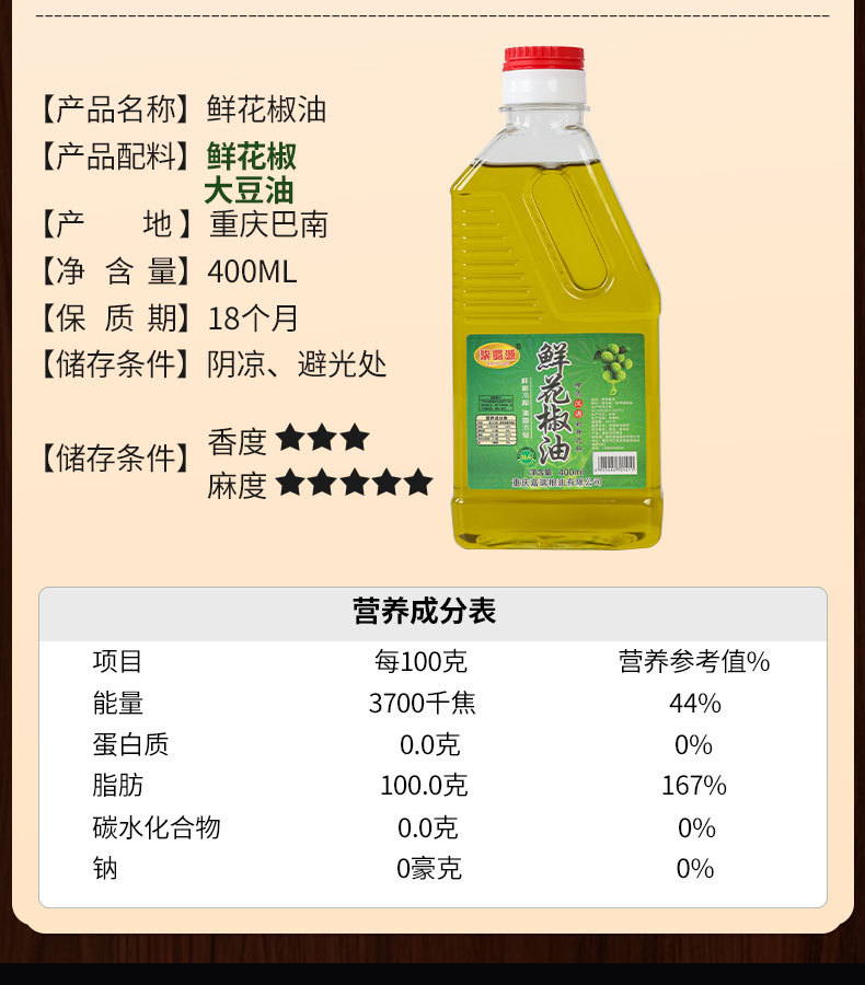 ![]() | 400ml qishuyuan rattan pepper oil 2.3 hemp degree | ¥23.85 / ≈ 290 ₽ | 3614 | 5805780764175 | |