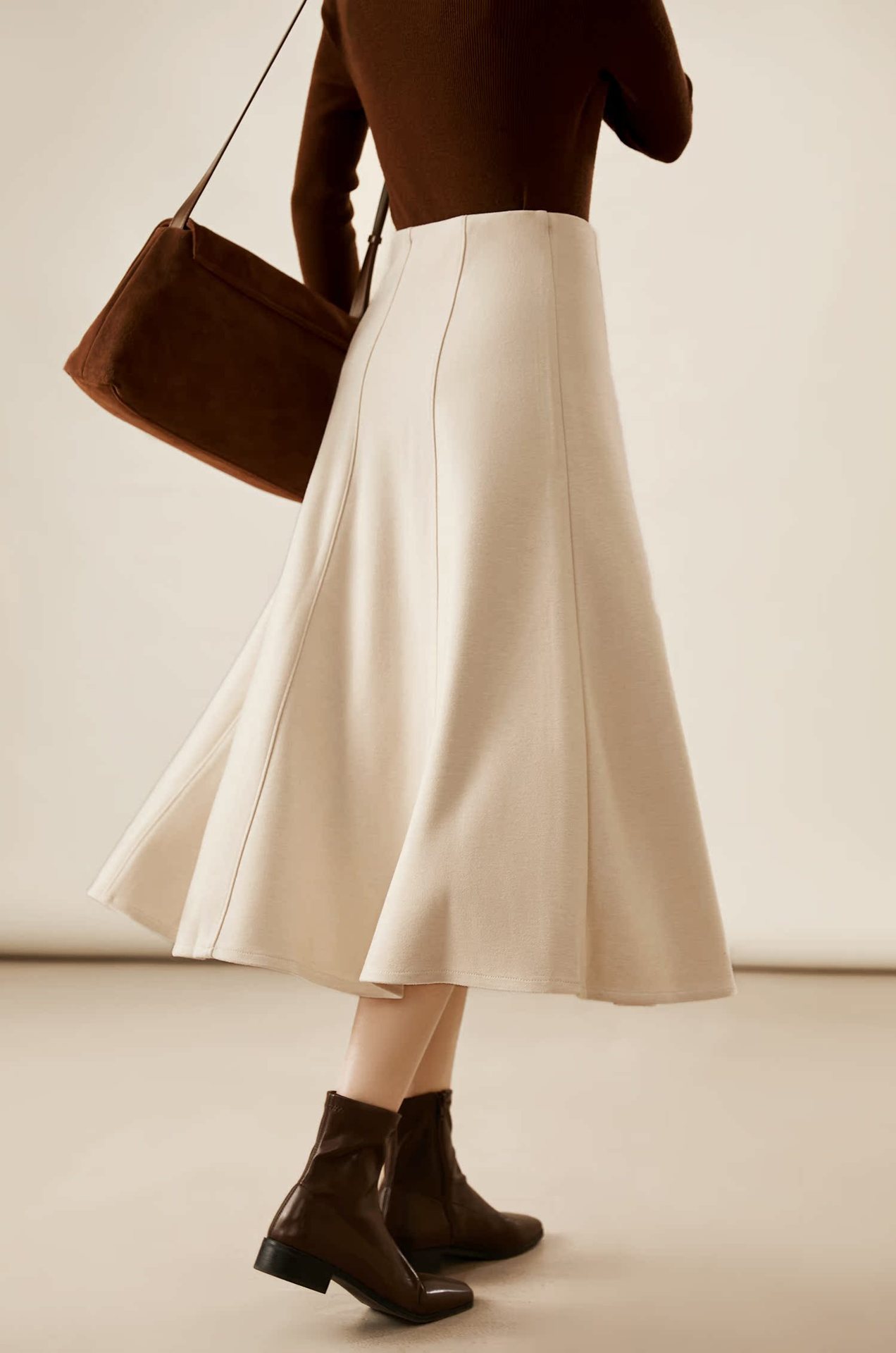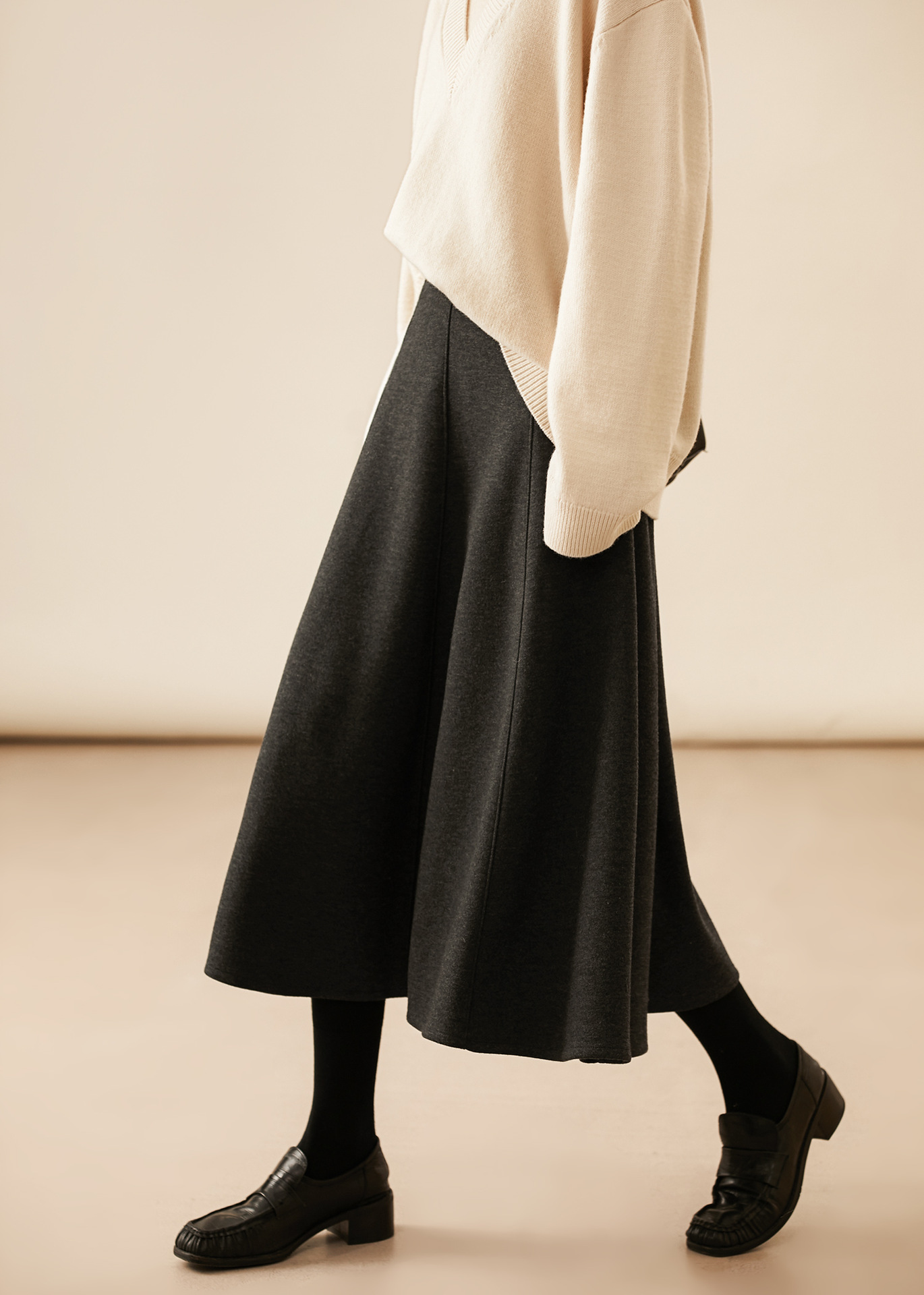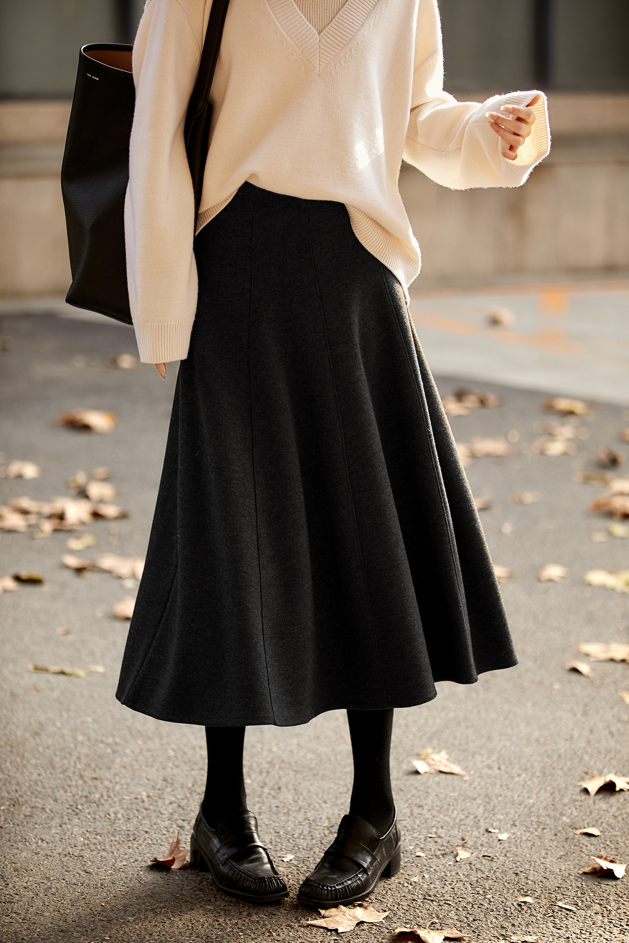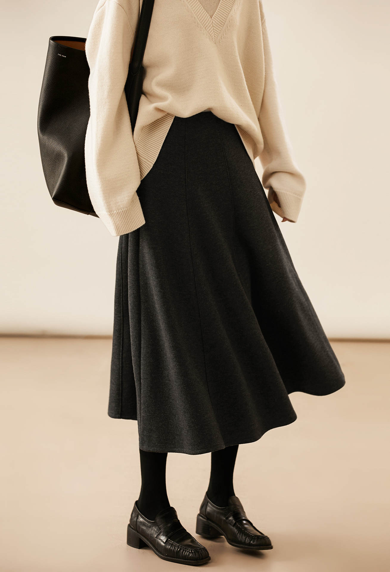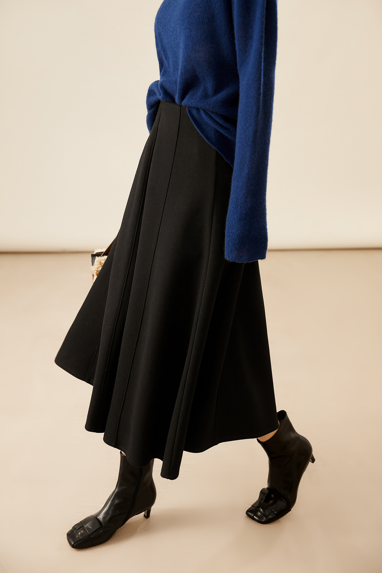 裙身凸出线条边装饰,让纯色的半裙变得简约而不简单