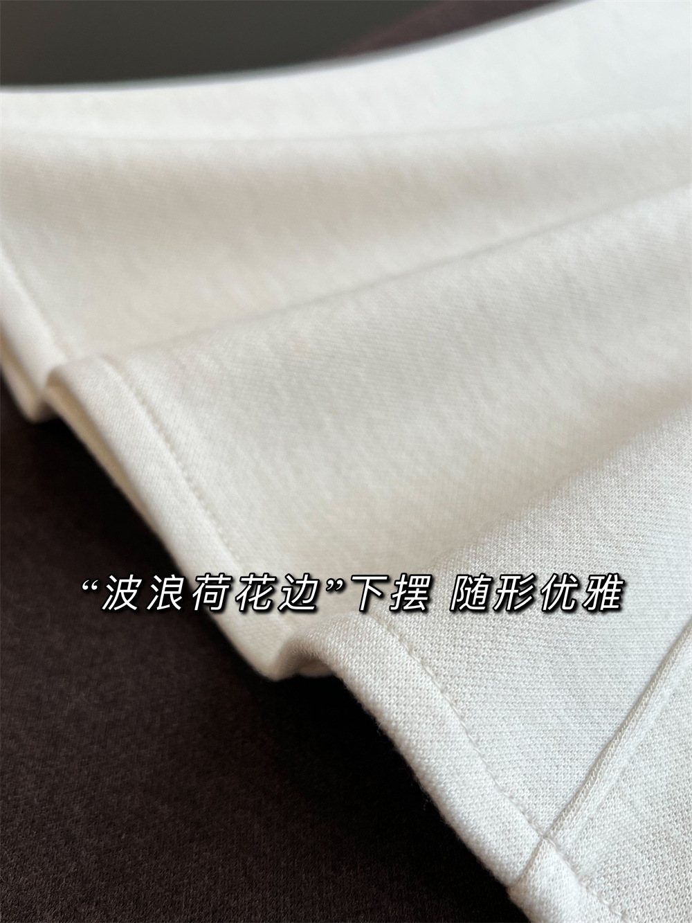 “波浪荷花边”的下摆,上身显轻盈不沉闷