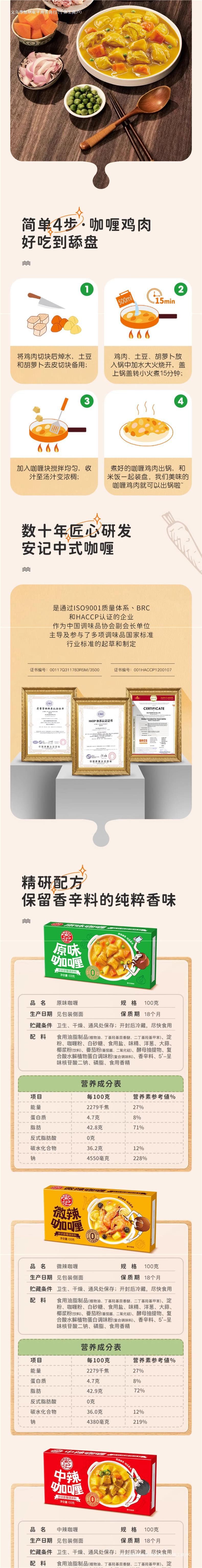 ![]() | 100g*3 slightly spicy curry | ¥24.38 / ≈ 297 ₽ | 3143 | 5792711303387 | |