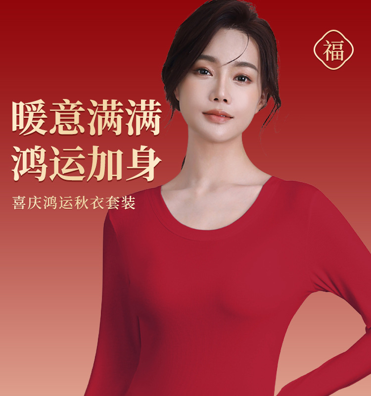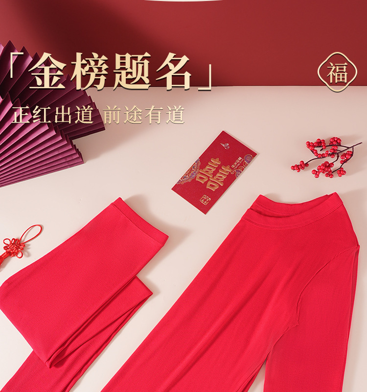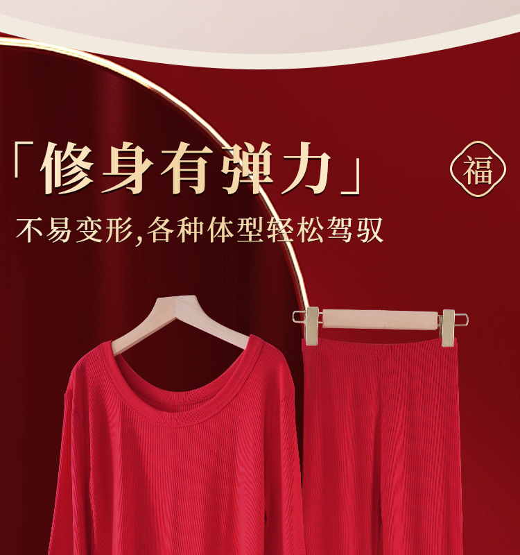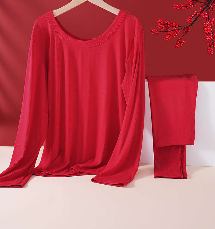 Красное Термобелье Набор Женское Модальное большой размер для Года Жизни без Лоуха Толстая Девушка Осеннее Одежда и Брюки для Свадьбы