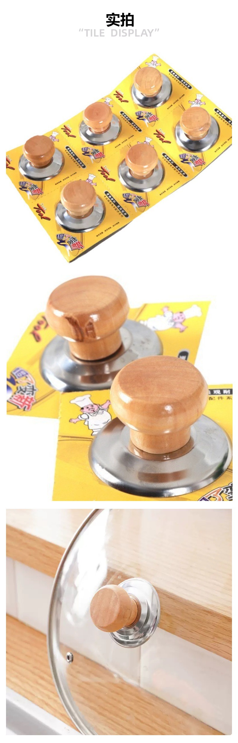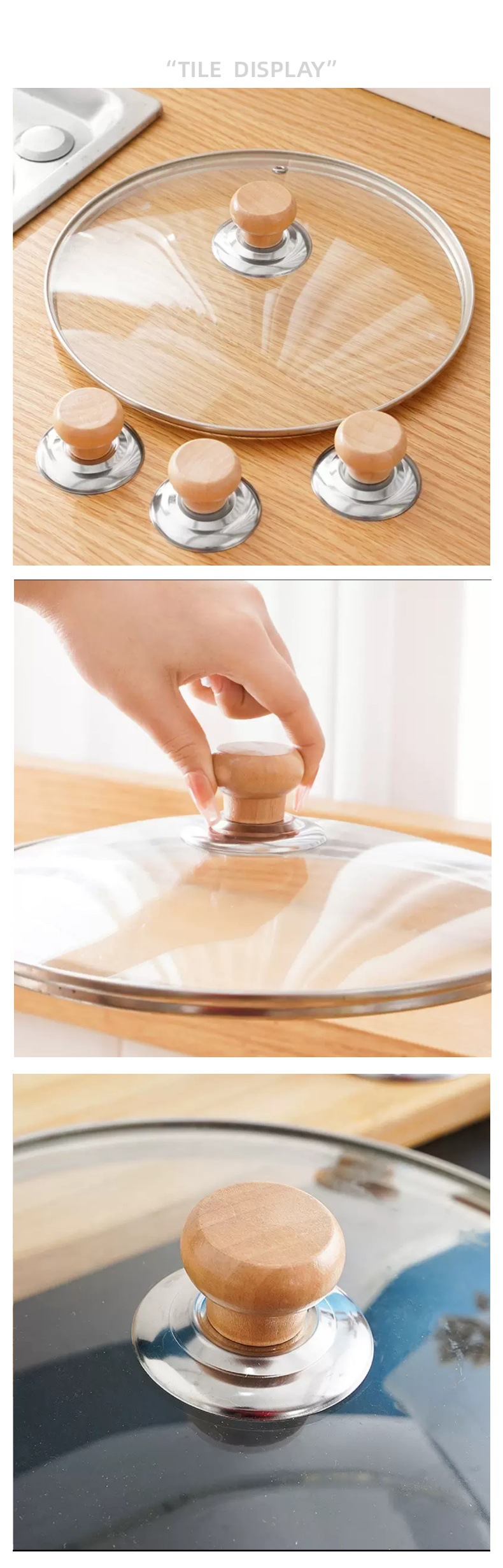 Деревянная крышка для кастрюли, универсальная, противоожоговая, с верхней бусиной, винтовая кнопка