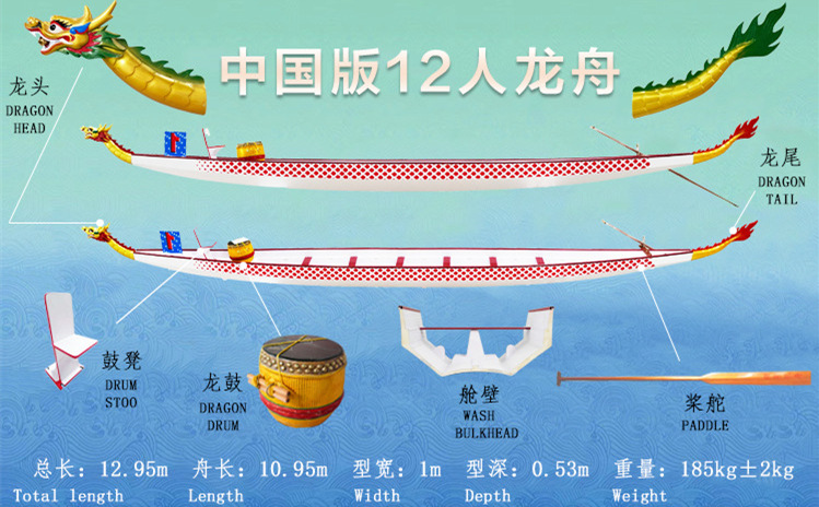 Драконья лодка на 12-22 человека, стандартная ФРП, международное признание IDBF