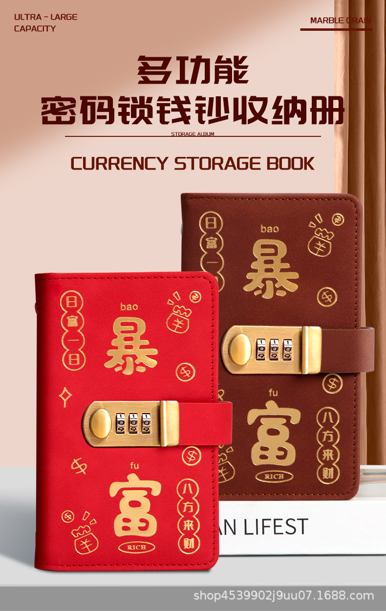 ![]() | Password lock [get rich] a6 money saving book - red (50 photos) | ¥8.5 / ≈ 103 ₽ | 2985 | 5626843001938 | |