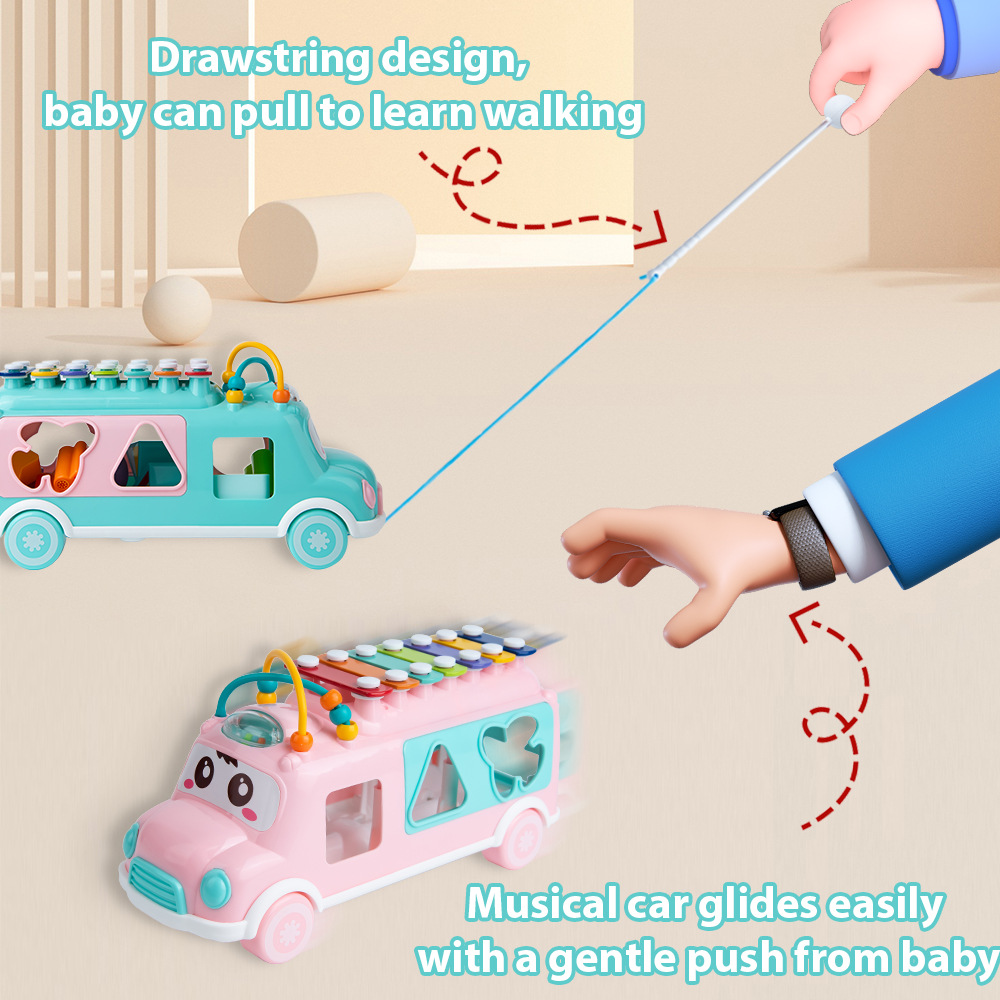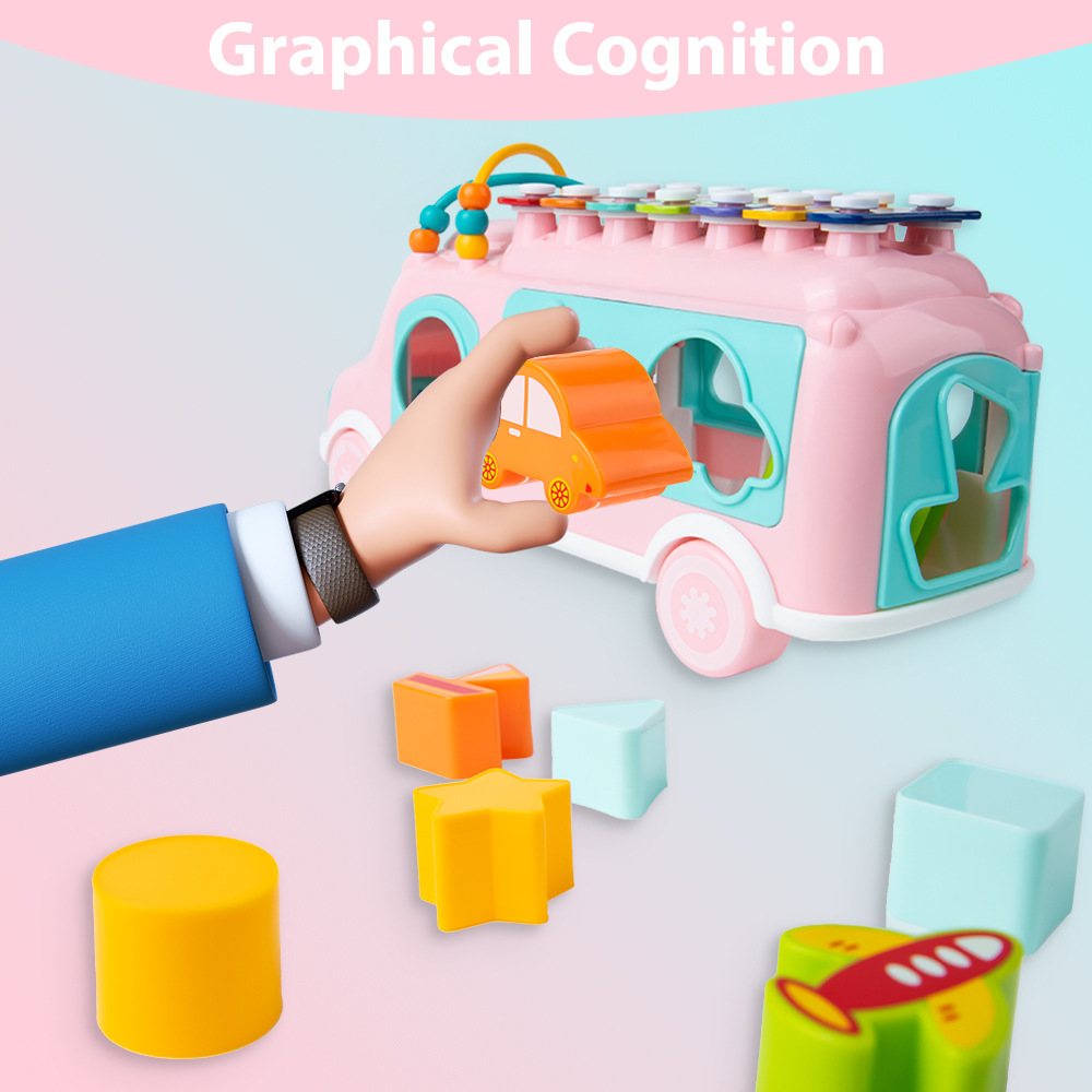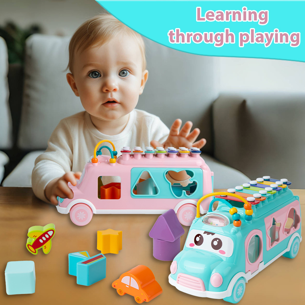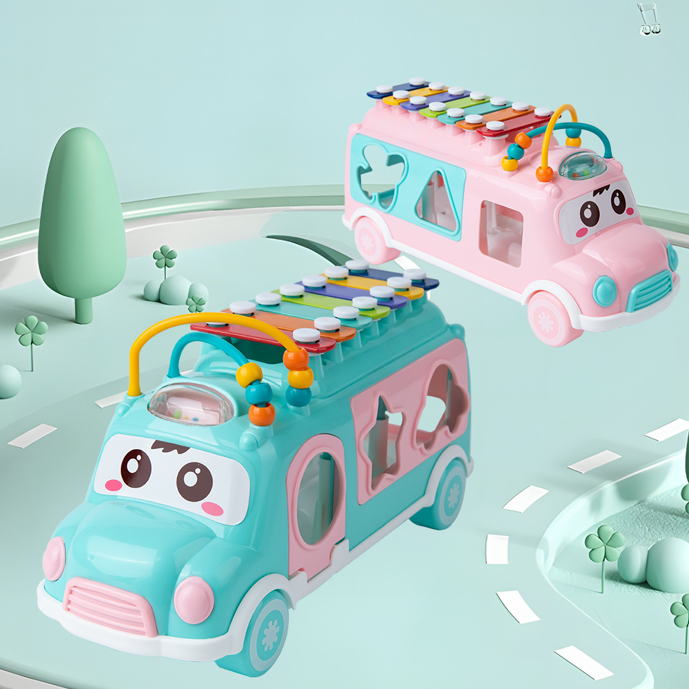 Кросс-бордерное детское автобусное стучащее пианино образовательные игрушки раннего образования для детей 0-3 года музыкальное просвещение многофункциональная машина