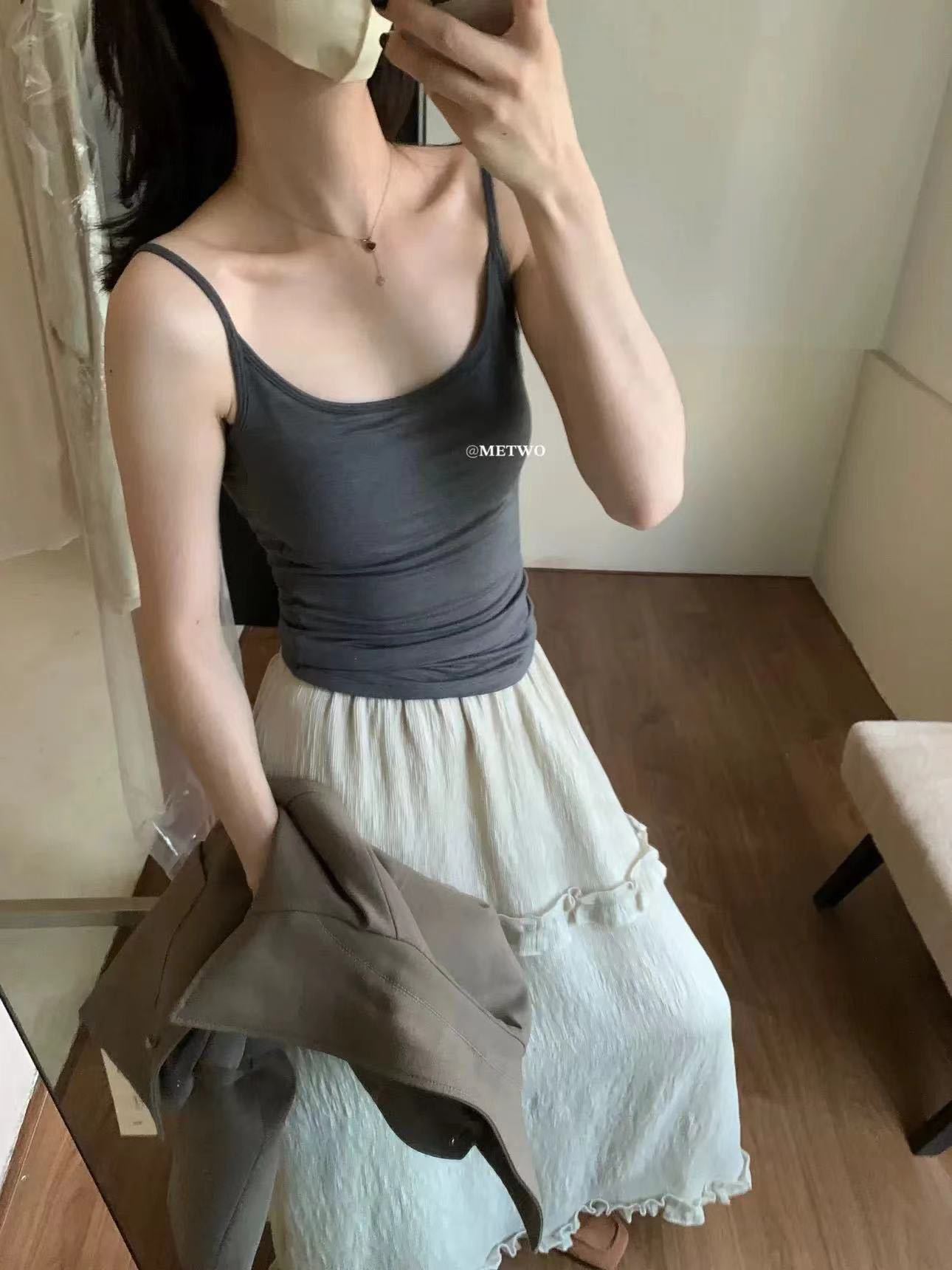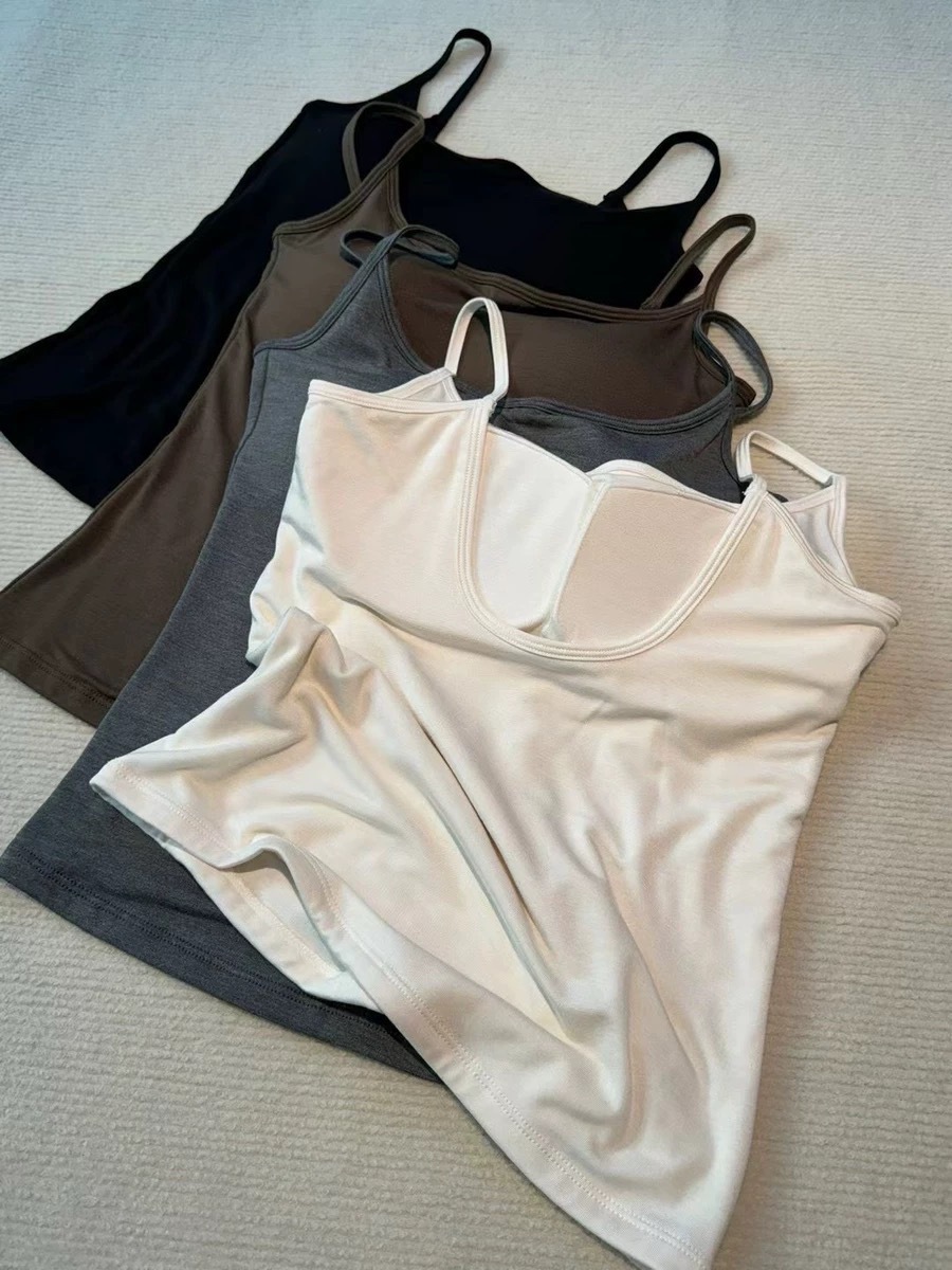 Жилетка с чашечками и тонкими бретелями для женщин лето и осень облегающая эластичная базовая одежда