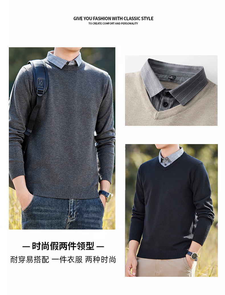 Легкий бизнес-свитер, фальшивый комплект, осень-зима, теплый