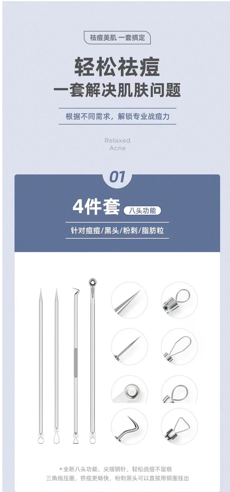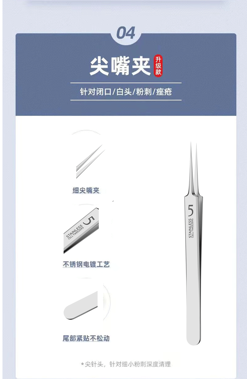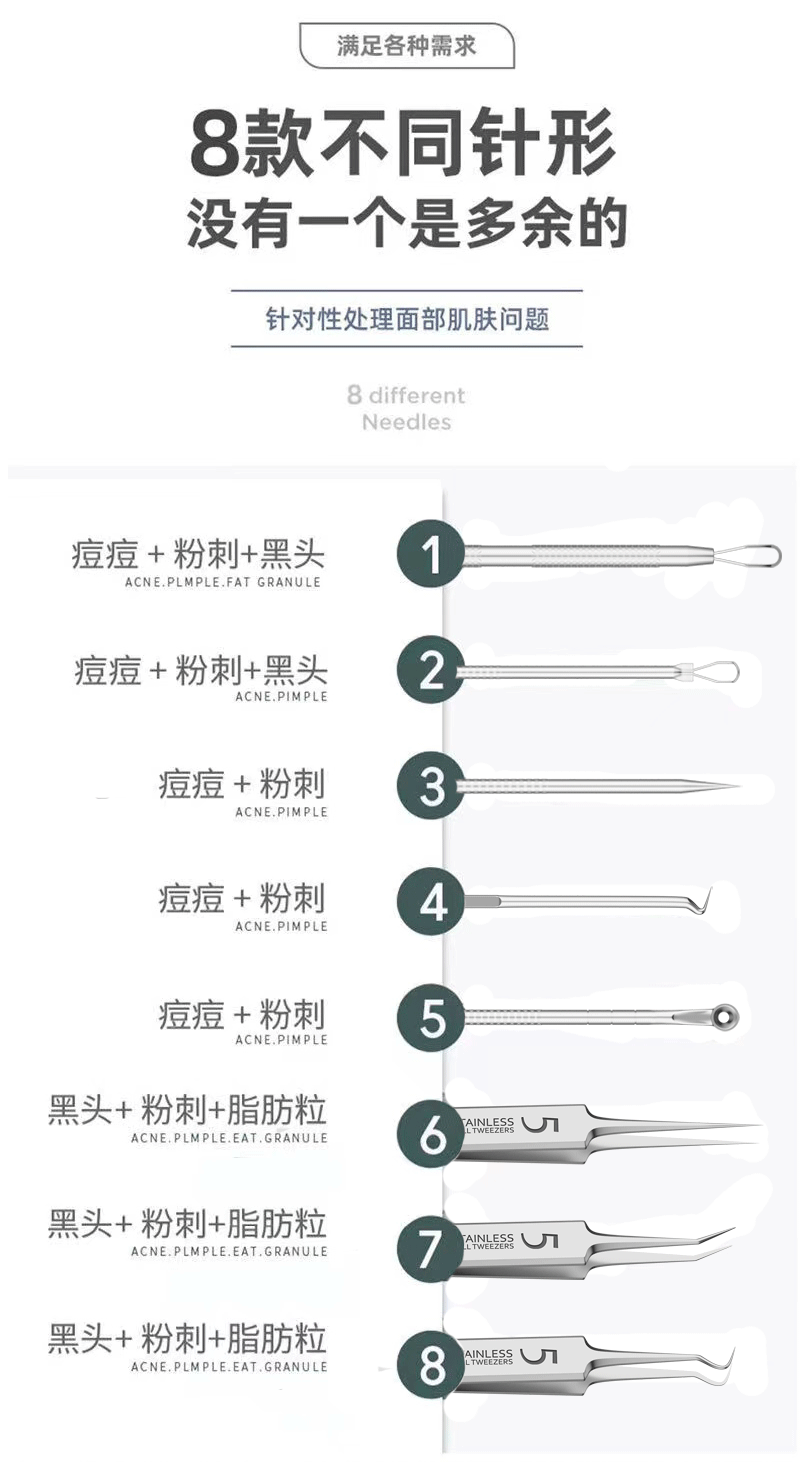 ![]() | Gift: 10 pieces of alcohol cotton | [eight-piece set] no. 5 triple clip + acne needle 5-piece set + plastic box | ¥4.6 / ≈ 56 ₽ | 99998 | 5798874576592 | |