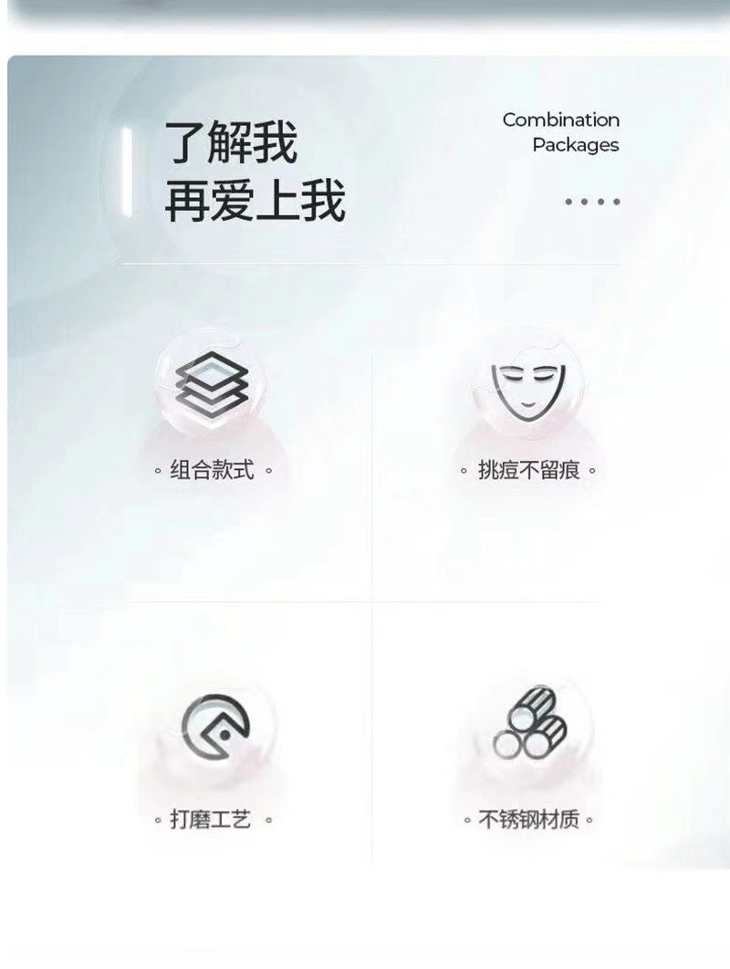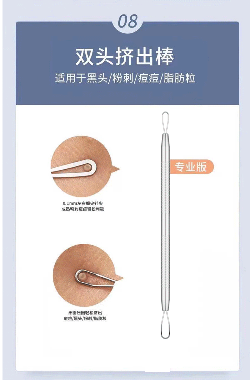![]() | Gift: 10 pieces of alcohol cotton + blackhead stickers + magnifying glass | [eight-piece set] no. 5 triple clip + acne needle 5-piece set + iron box | ¥6.75 / ≈ 82 ₽ | 99996 | 5798874576605 | |
