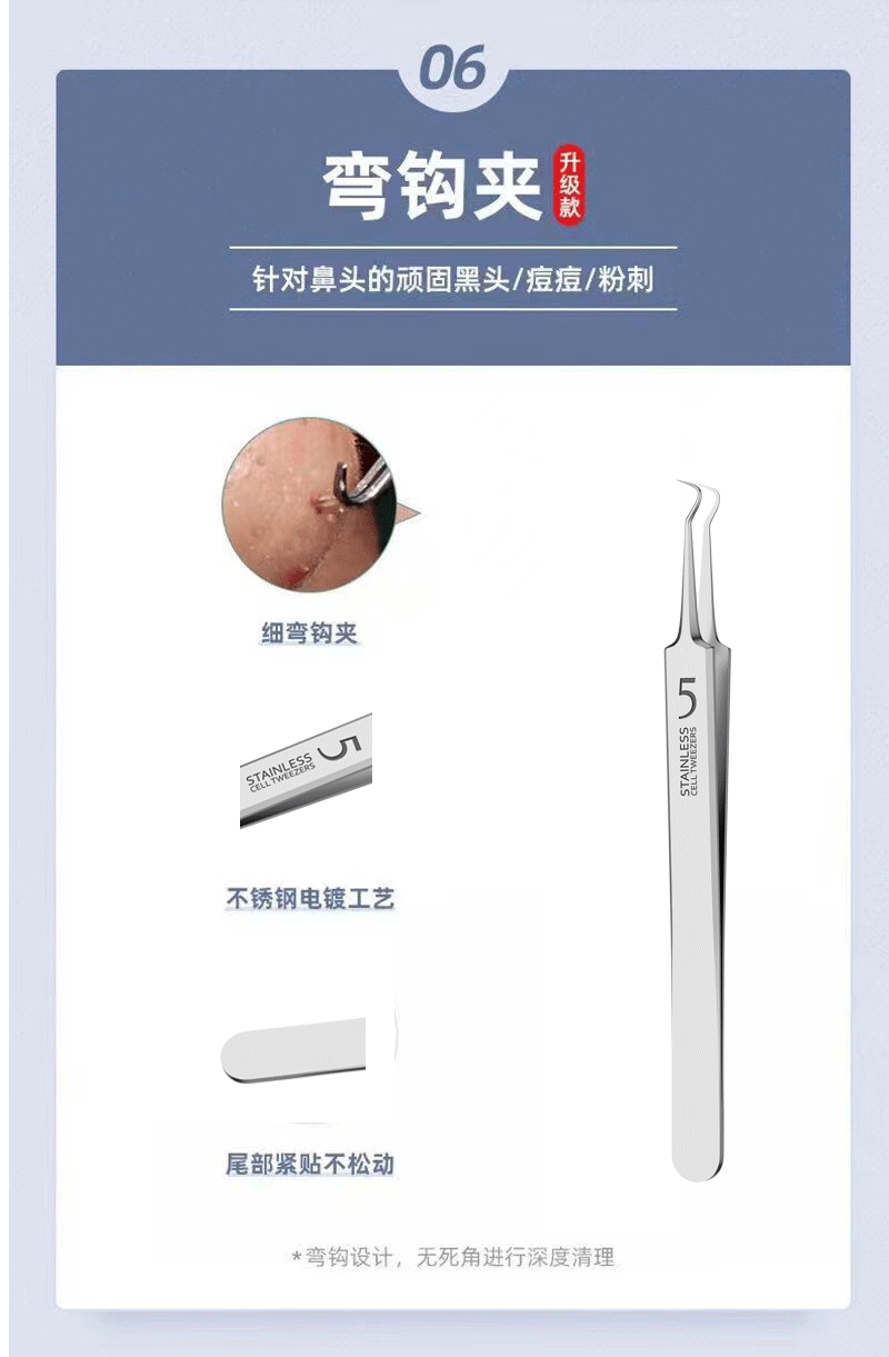 ![]() | Gift: 10 pieces of alcohol cotton + blackhead stickers + magnifying glass | No. 5 straight clip + oblique clip + hook clip + straight needle + plastic box | ¥4.55 / ≈ 55 ₽ | 99999 | 5627436557633 | |