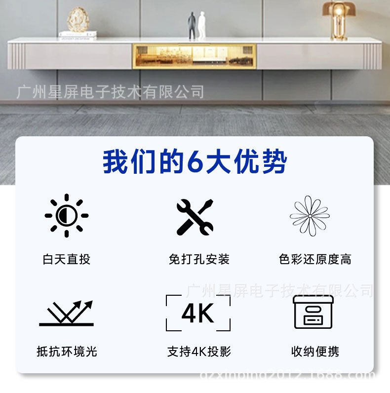 Самоклеящаяся штора для проектора, без пробивки, металлическая, против света, 100 дюймов, для дома