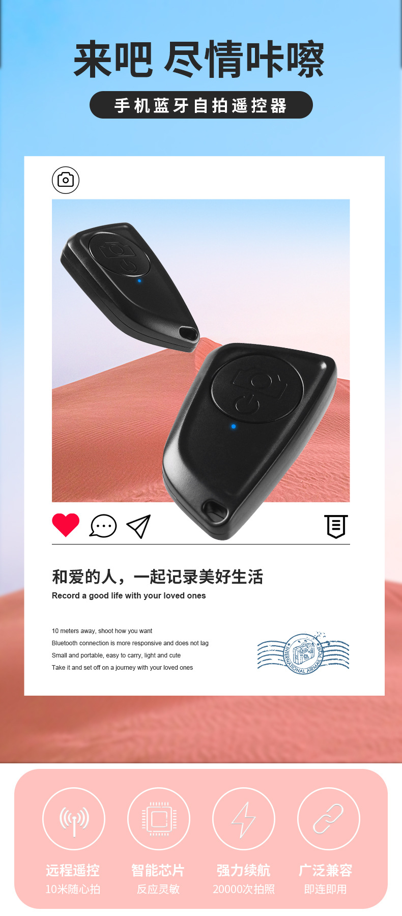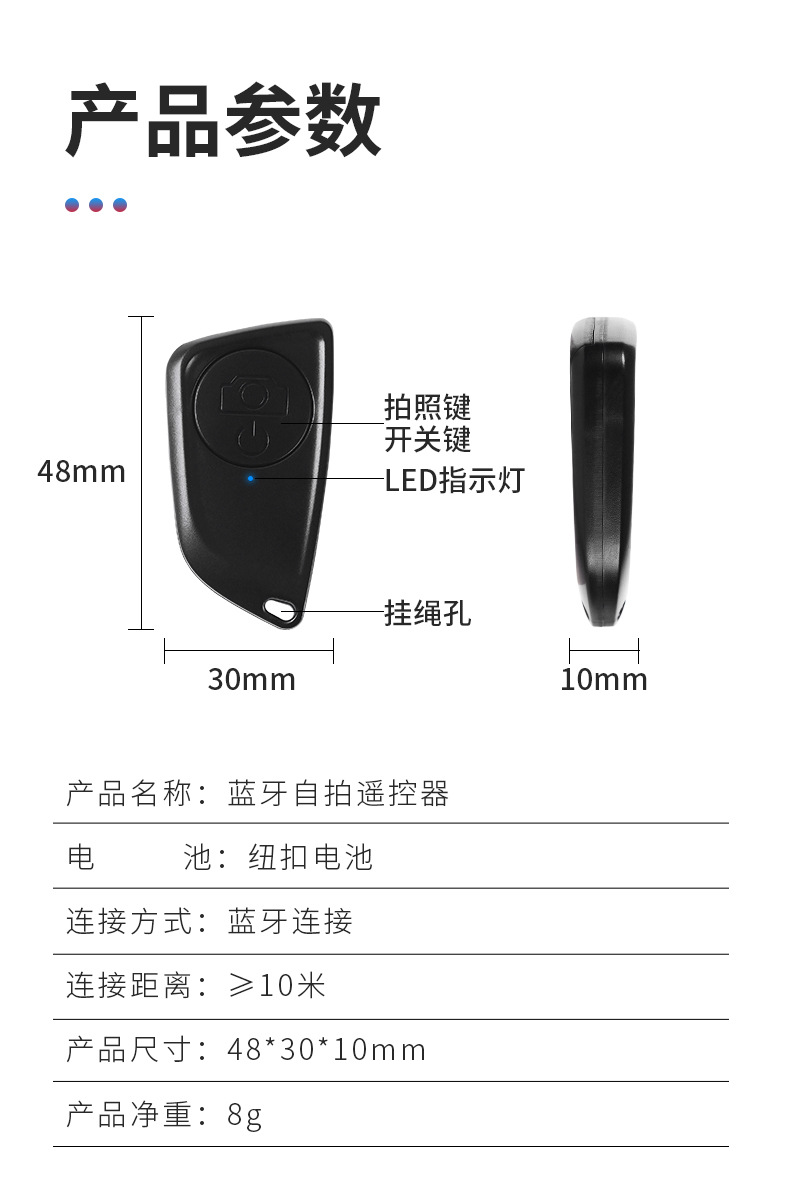 新款私模单键蓝牙自拍器 通用安卓IOS手机蓝牙遥控器