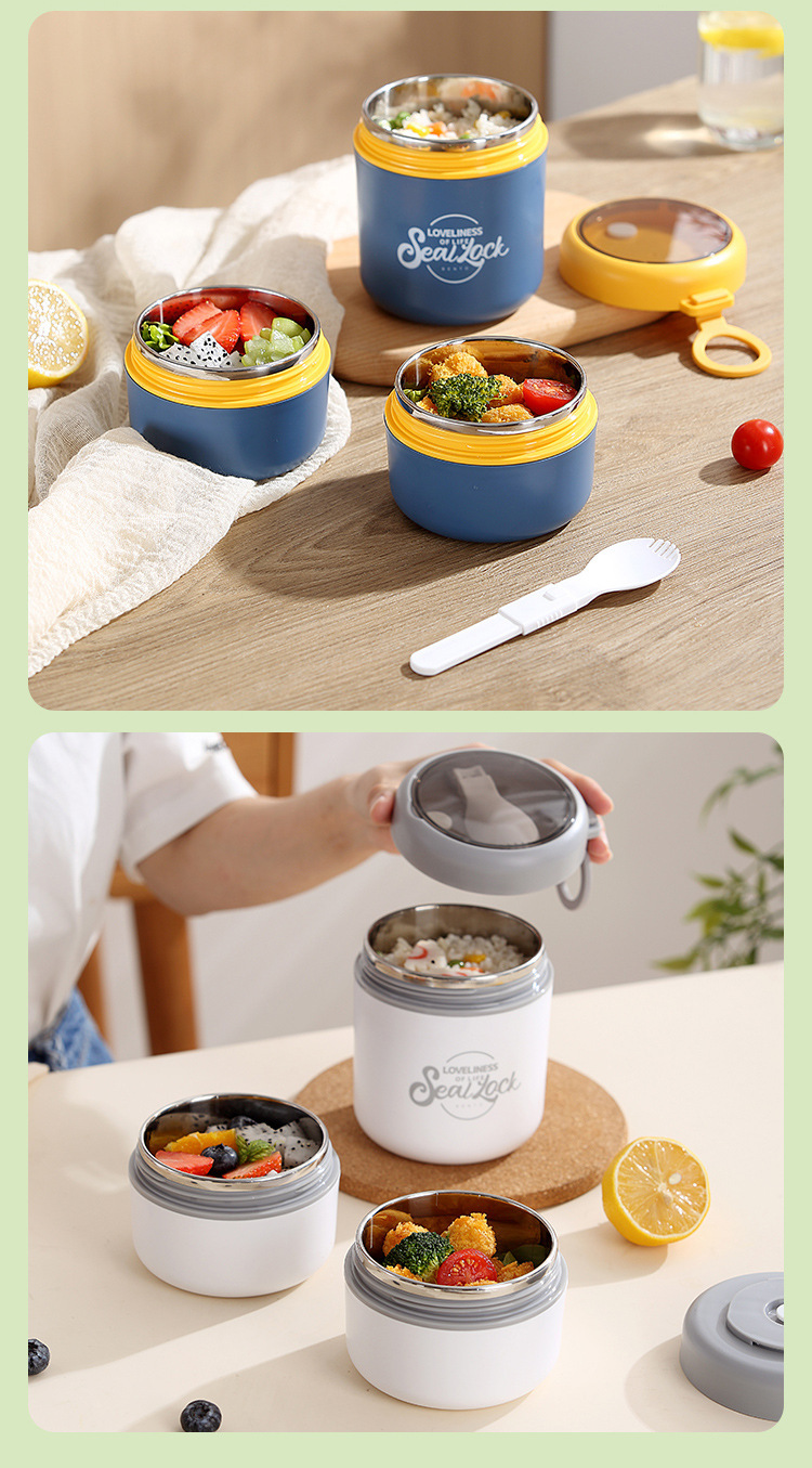304 нержавеющая сталь большая ёмкость термоизоляционная чашка для завтрака с крышкой и ложкой, овсяная чашка, молочная чашка, портативная для студентов и офисных работников