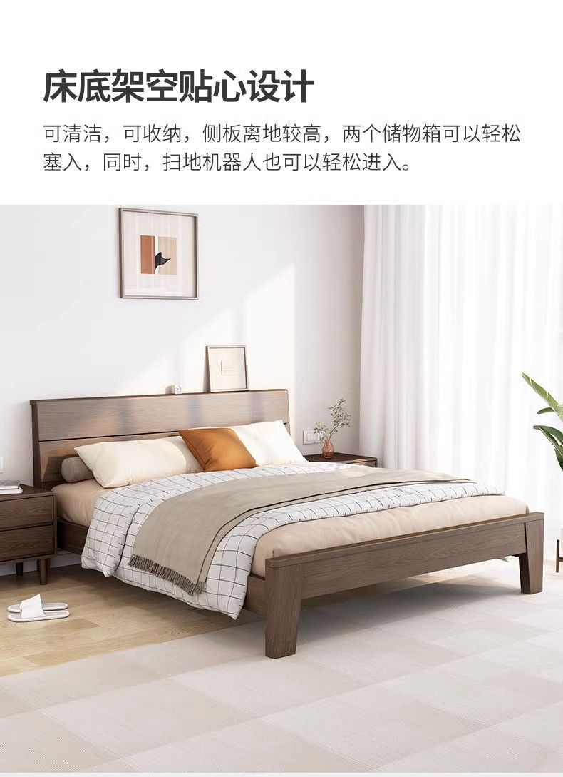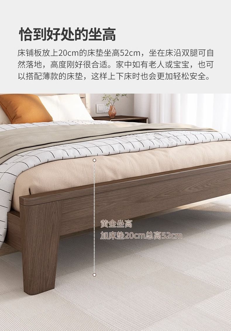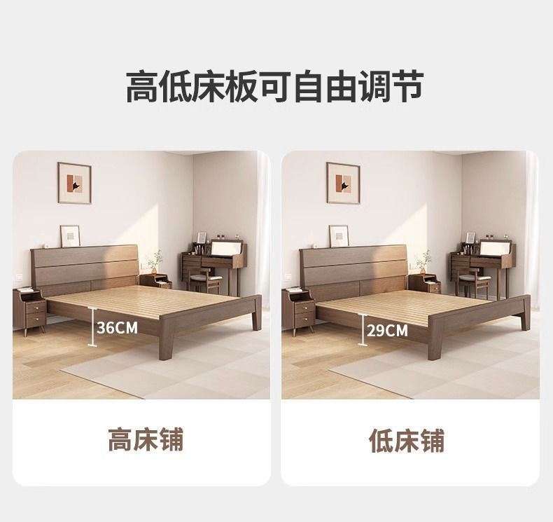 Кровать из массива дерева 1.5 м, 1.8 м, комбинация тумбочки для главной спальни, современная высокая кровать, регулируемая высота сидения для двуспальной кровати