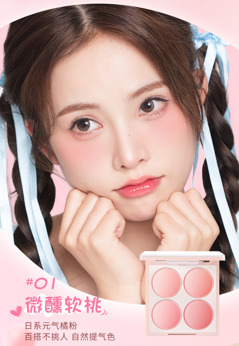 ![]() | 【01#Tipsy soft peach] four color blush palette | ¥9.9 / ≈ 120 ₽ | 256 | 5628994340092 | |