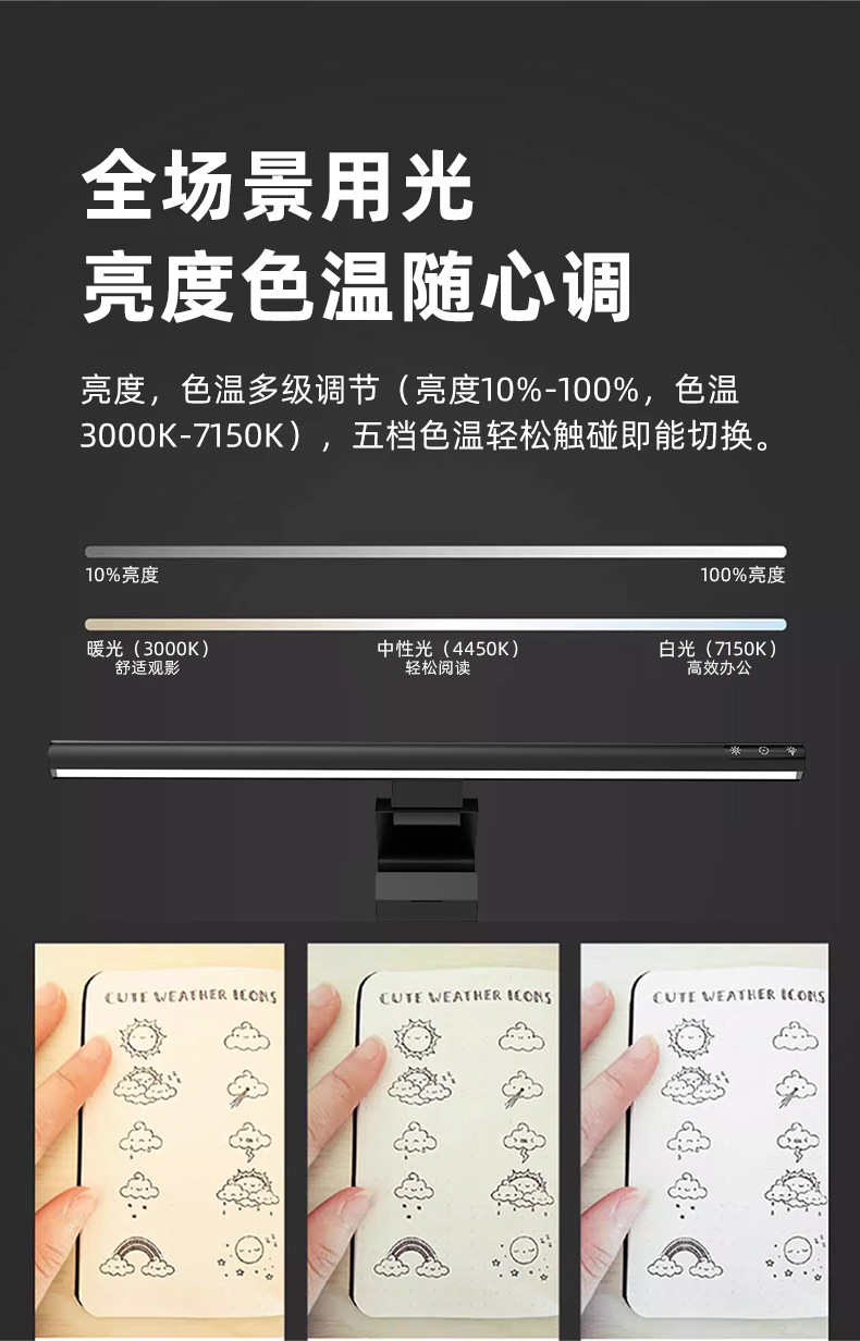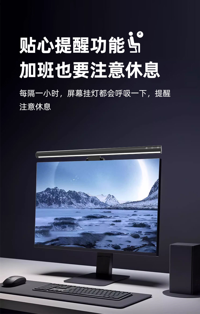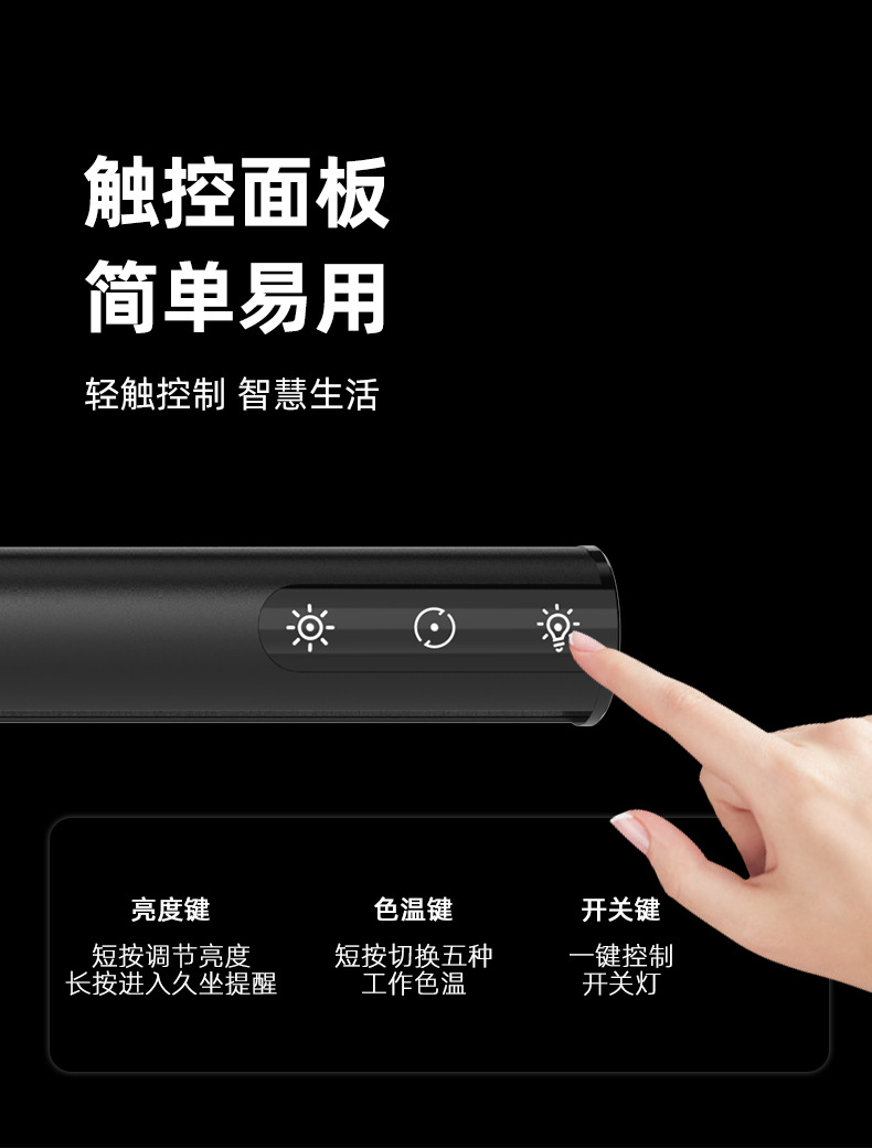 功能特点:三档调光,五种色温,久坐提醒模式,非对称光,无可视频闪。