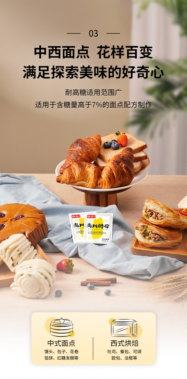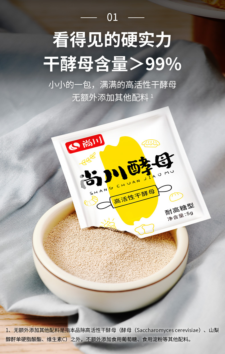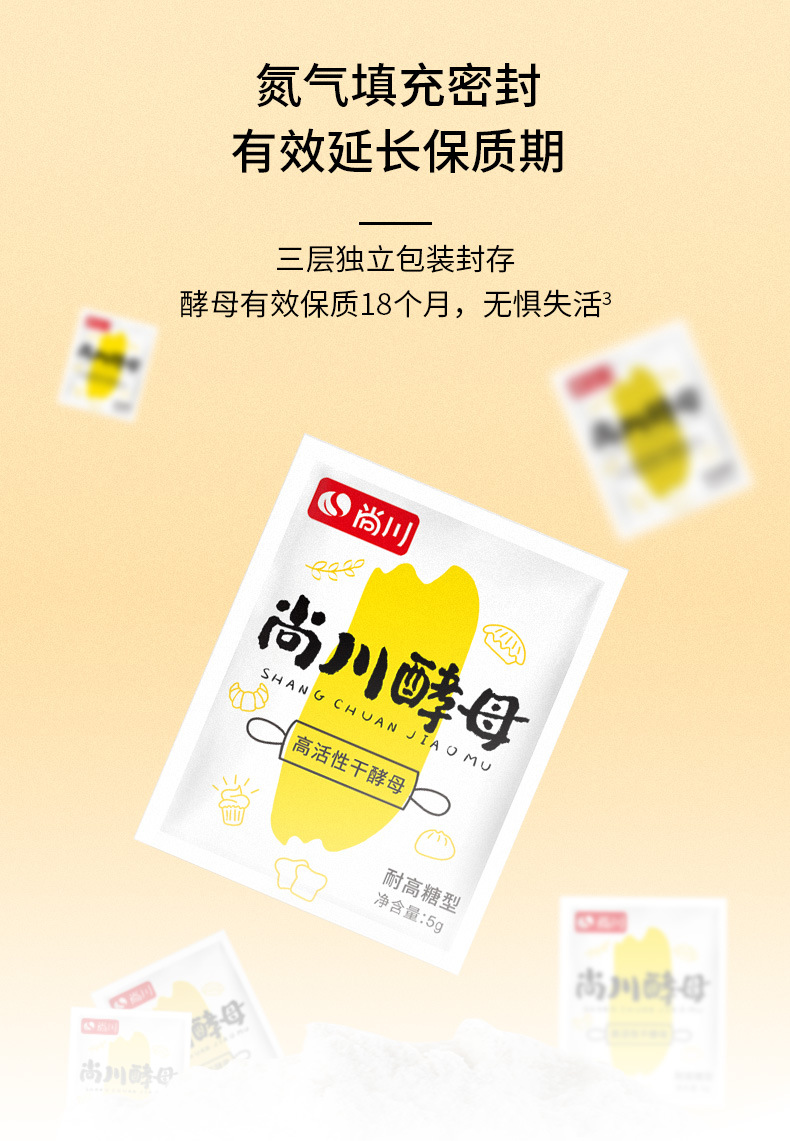 Сухие дрожжи Шанчжуан, высокая активность, для парового хлеба и булочек, многофункциональная упаковка 5г