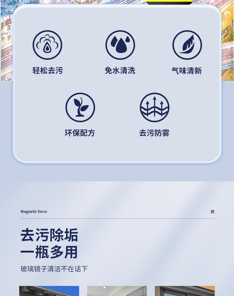 Чистящее средство для стекол, специальное для окон, сильное обеззараживание