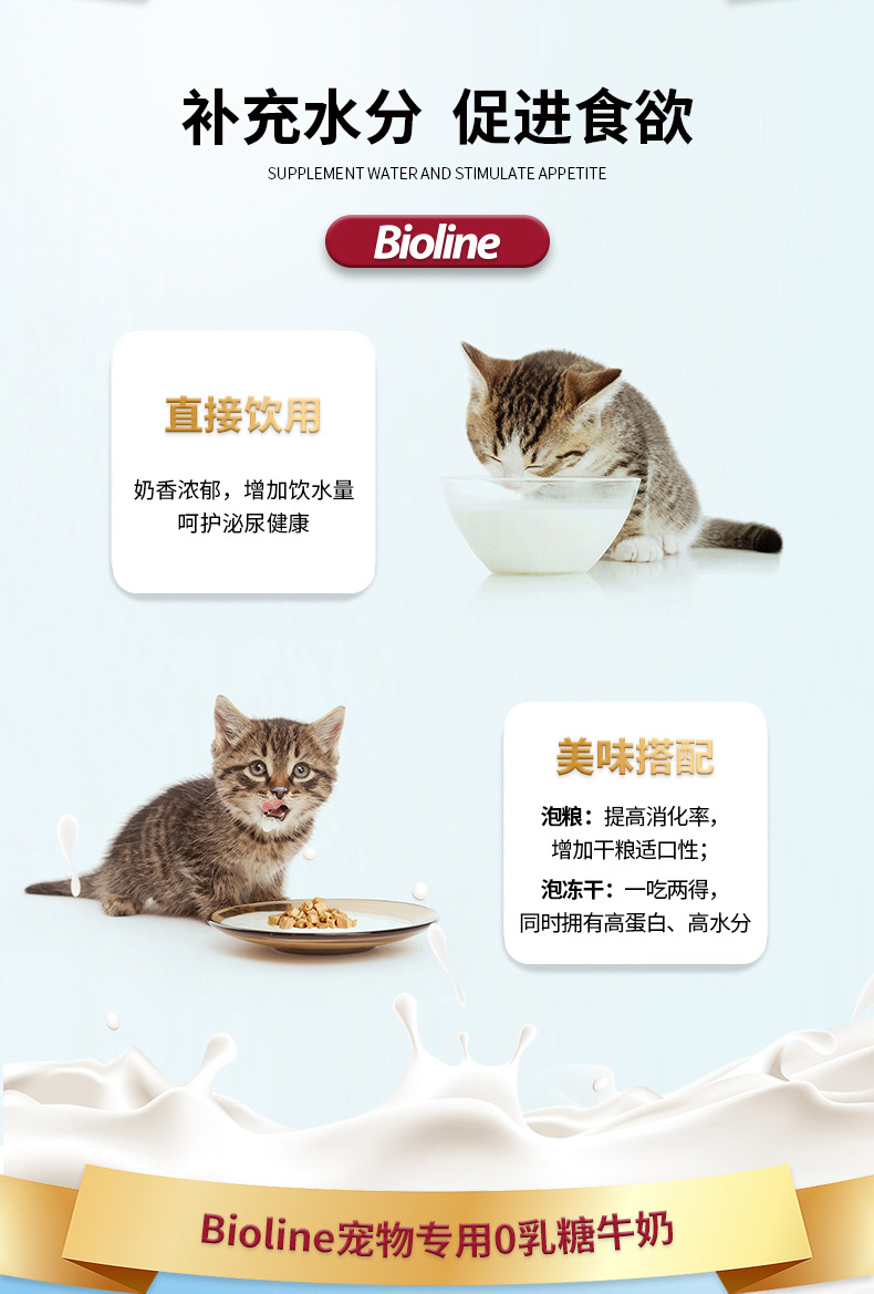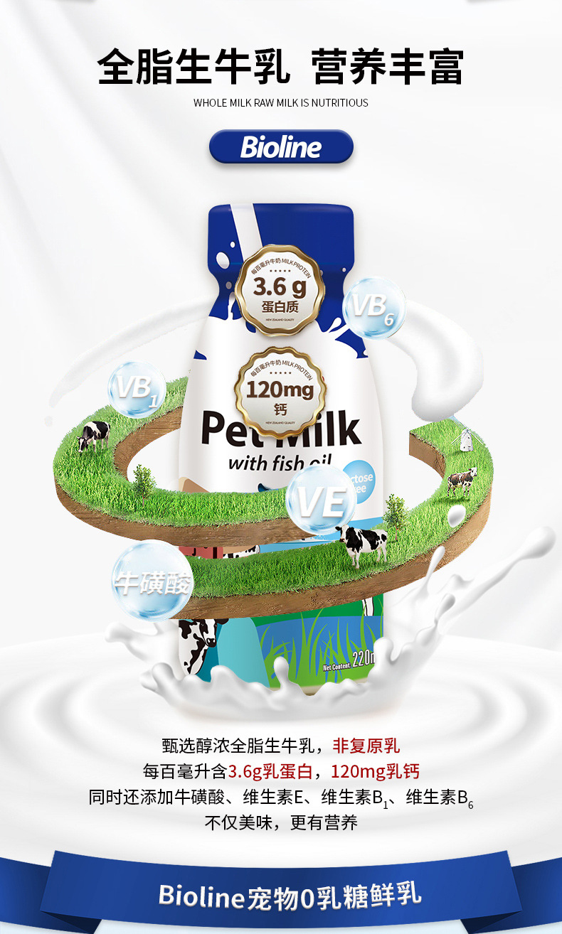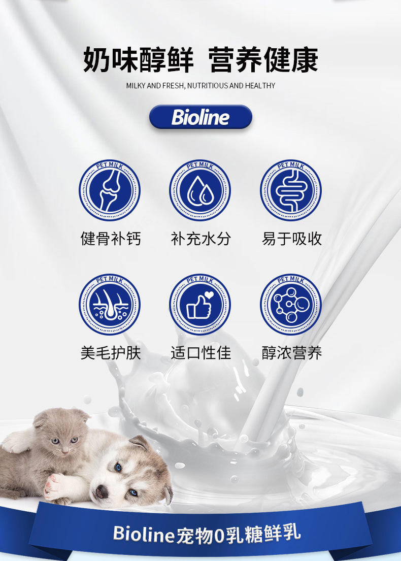 Молоко Bioline для домашних животных 0 лактозы, свежее молоко для собак, молоко для кошек, рыбий жир для кошек, молоко для красоты шерсти