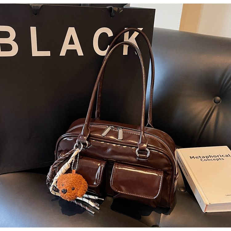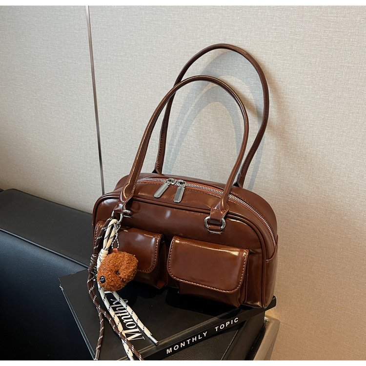 Сумка под мышку для женщин, 2024 новый стиль, ретро большая вместительная сумка с двумя карманами, портативная сумка через плечо, высококачественная сумка Tok Bowling