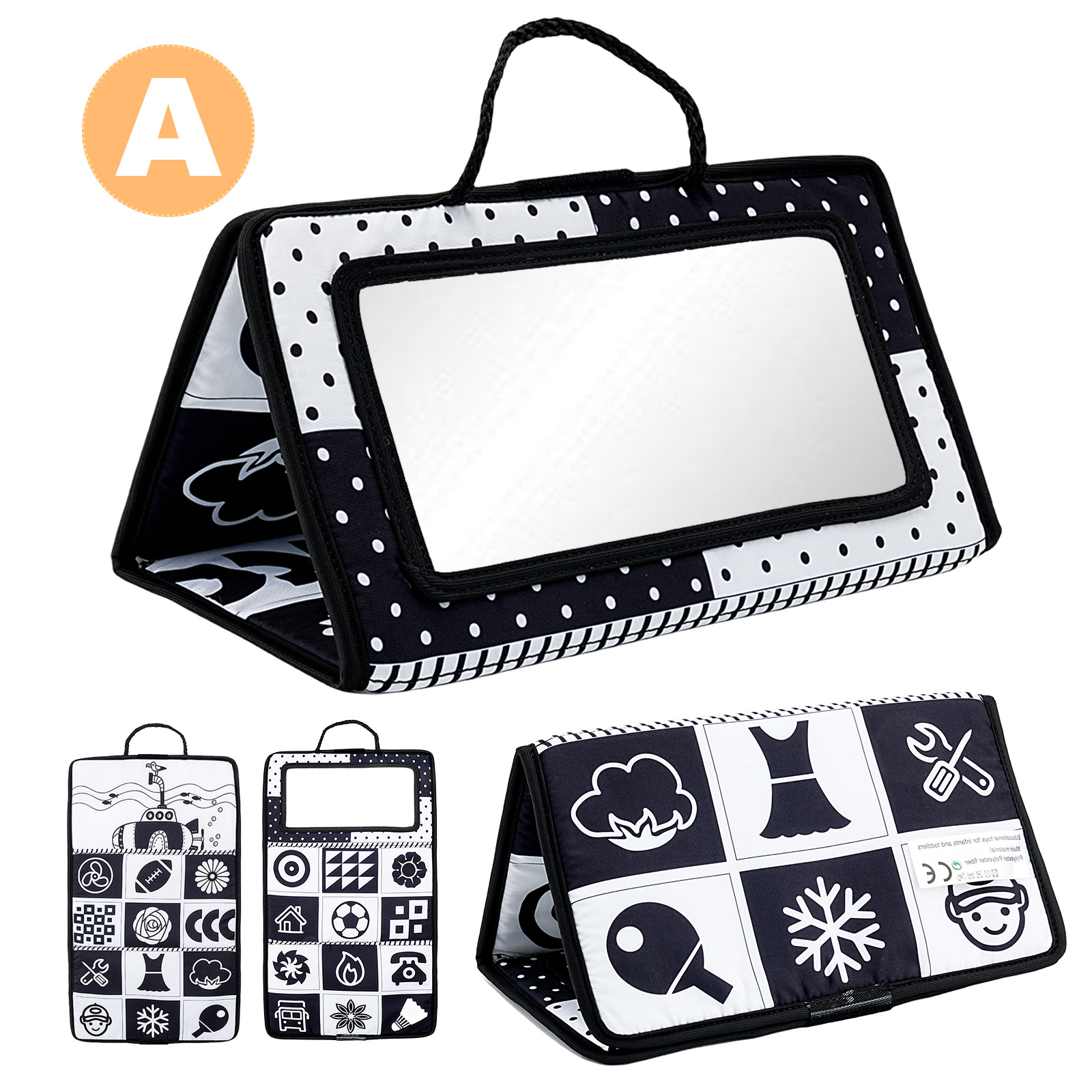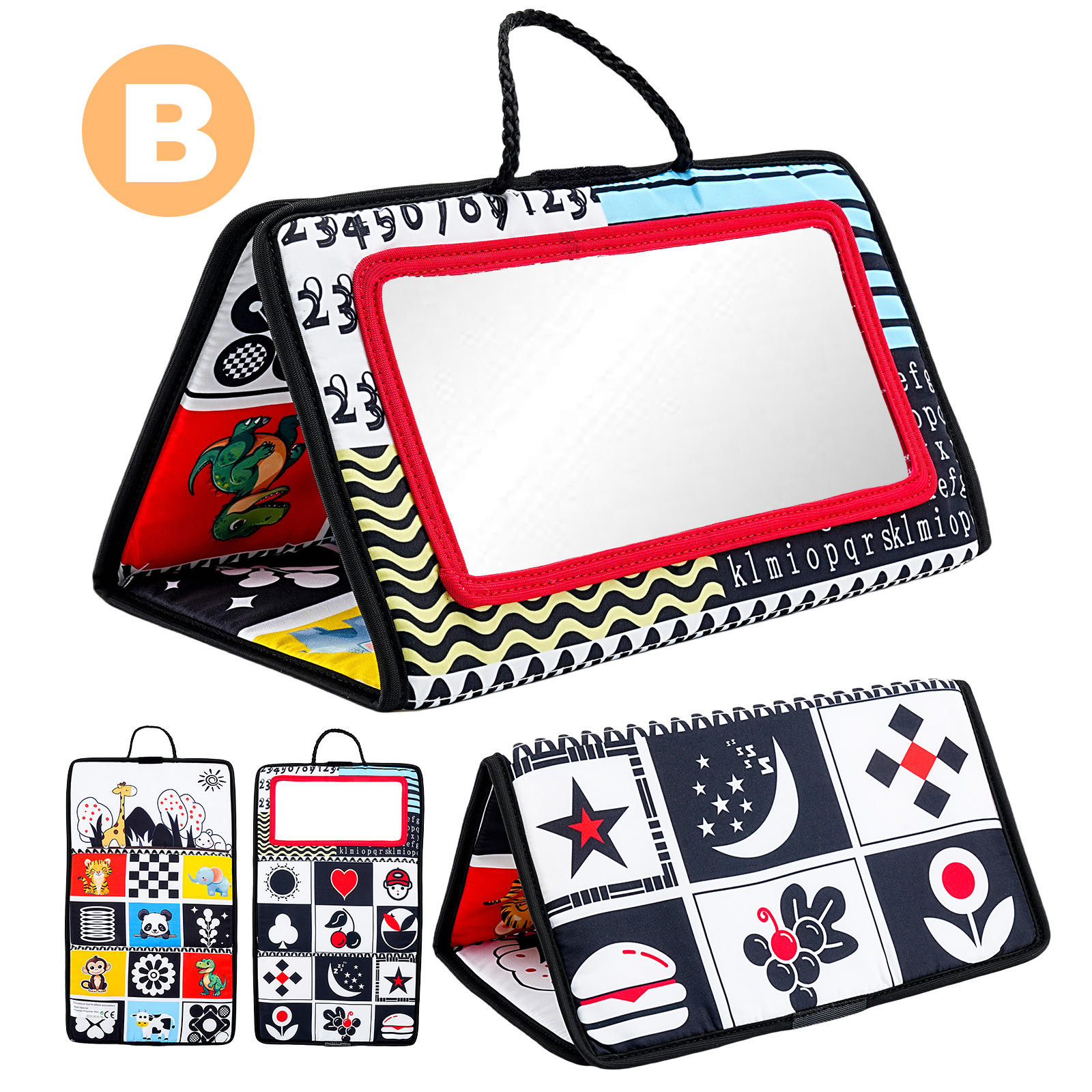 Складная игрушка для коляски с погремушкой и зеркалом