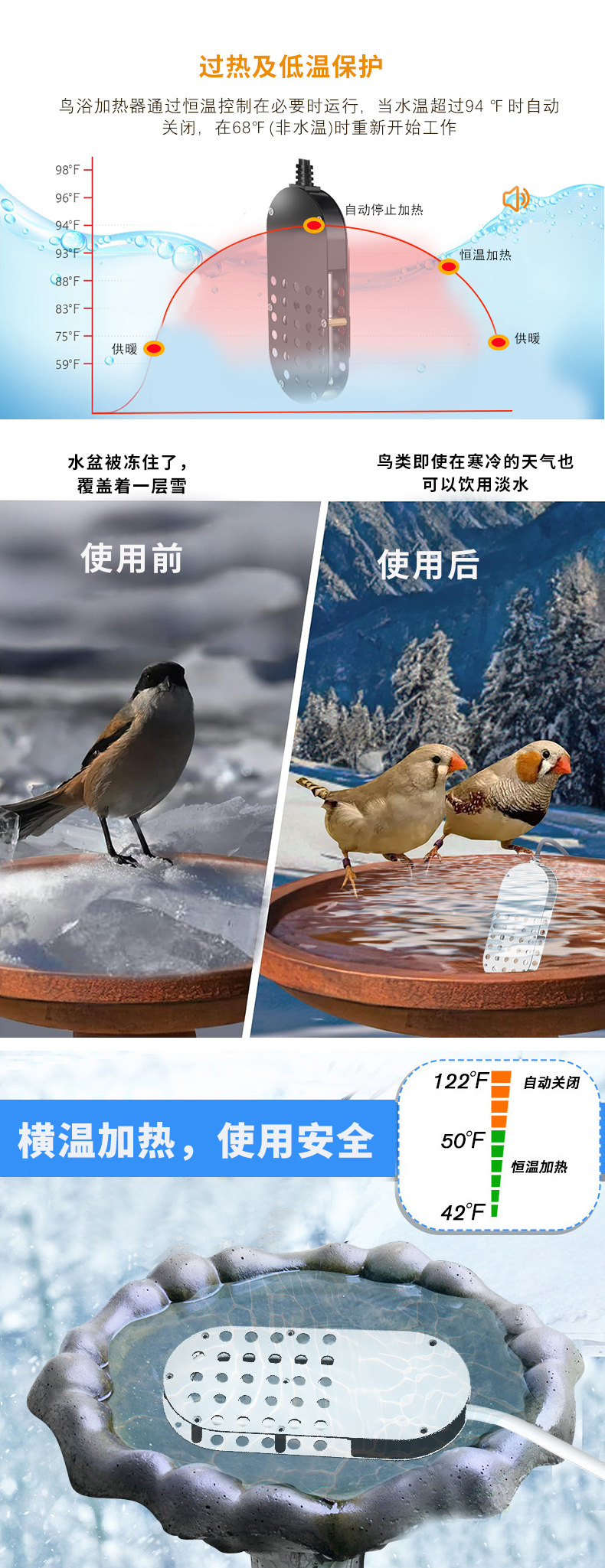 Кросс-бордерный обогреватель для купания птиц, обогреватель для растопки льда, интеллектуальная система контроля температуры, обогреватель для сада на улице