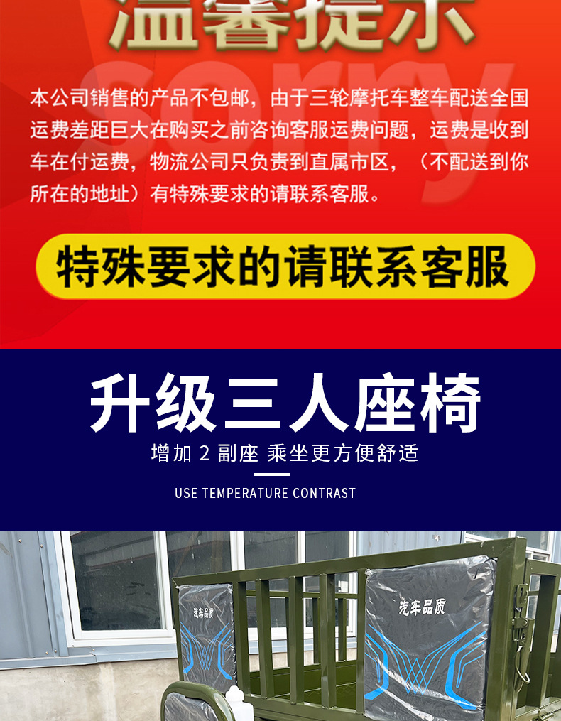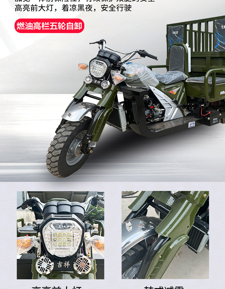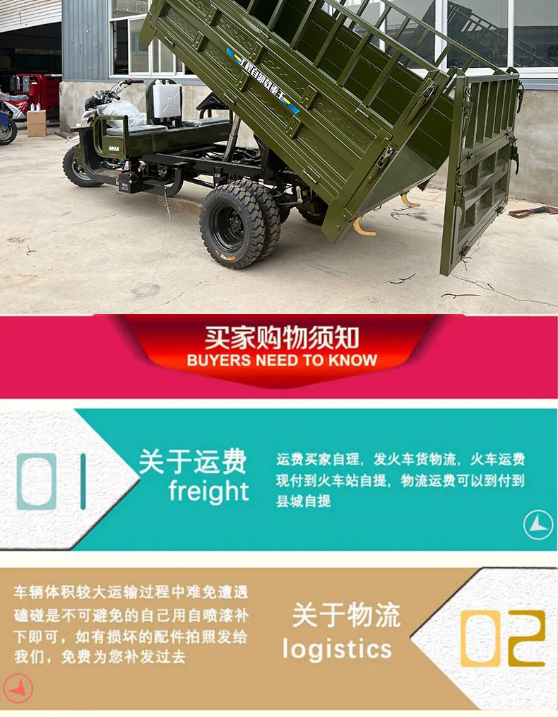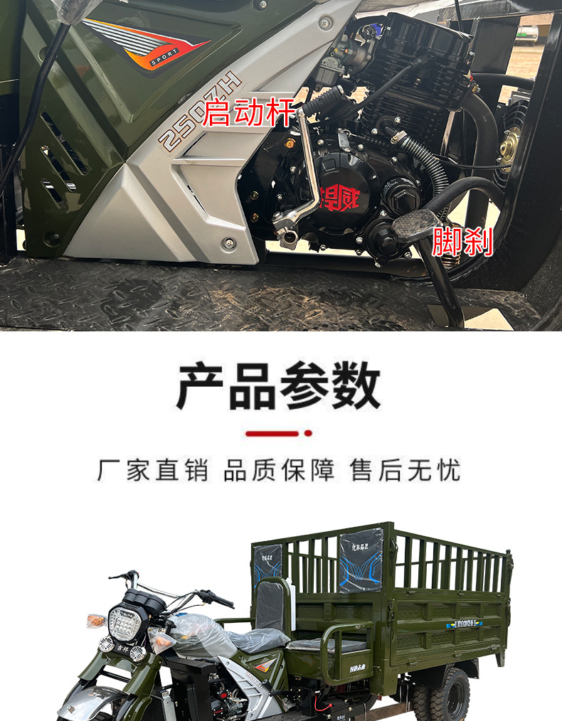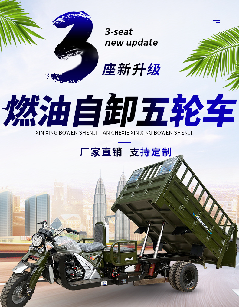 Трехместный топливный трицикл, водяное охлаждение, тяжелый кросс-бордный самосвальный трицикл