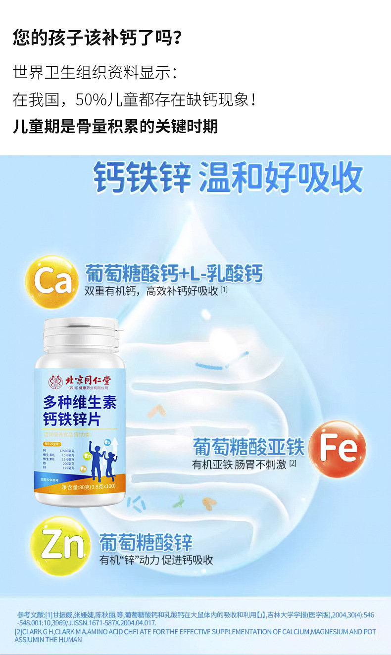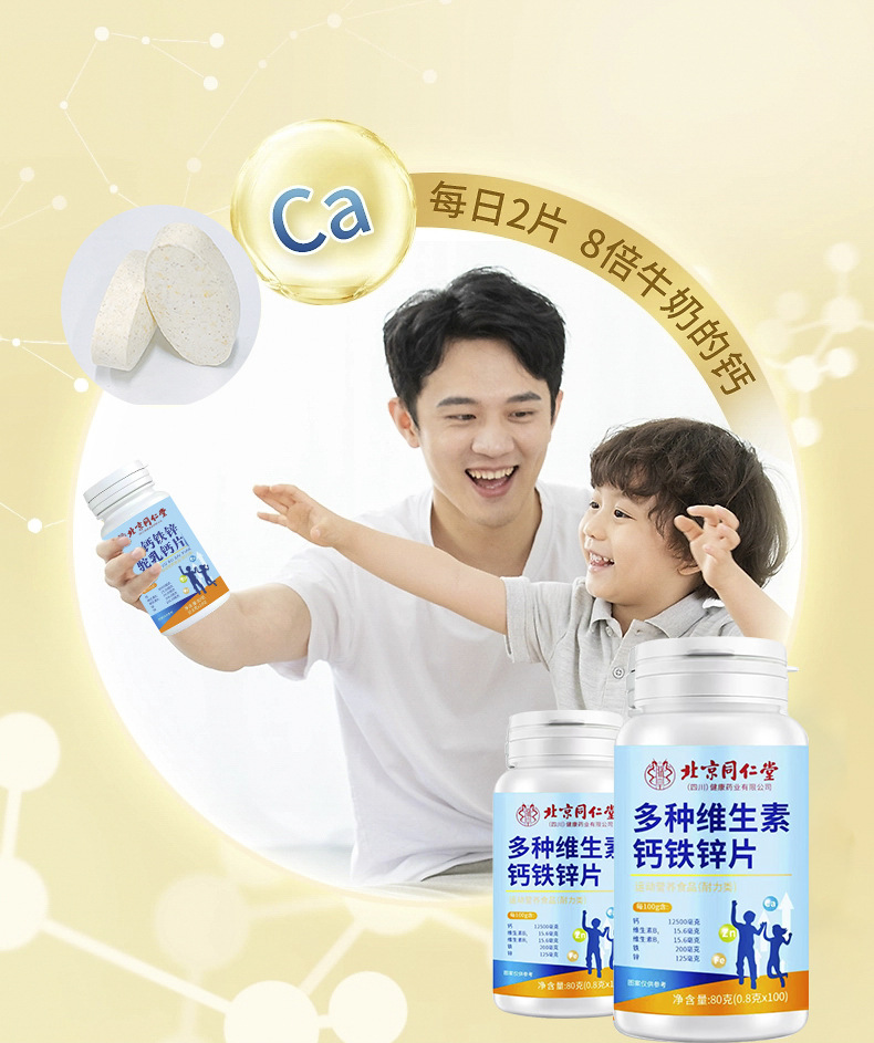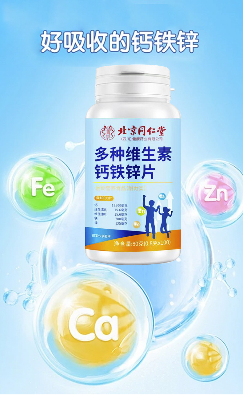 Таблетки кальция, железа, цинка и верблюжьего молока Beijing Tongrentang, добавка кальция для детей и пожилых