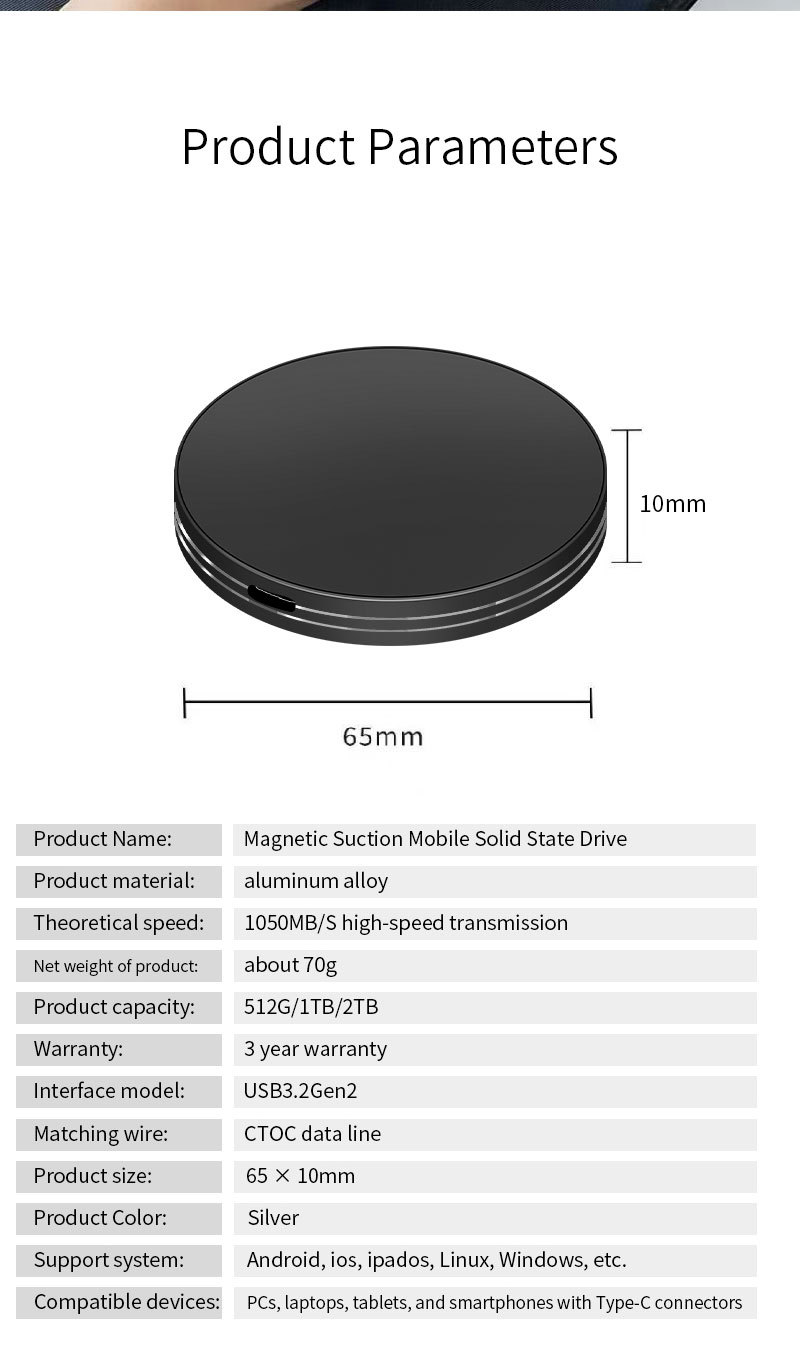 SSD магнитный круглый зарядный мобильный жесткий диск 1TB/2TB/4TB/8TB кросс-граница новинки