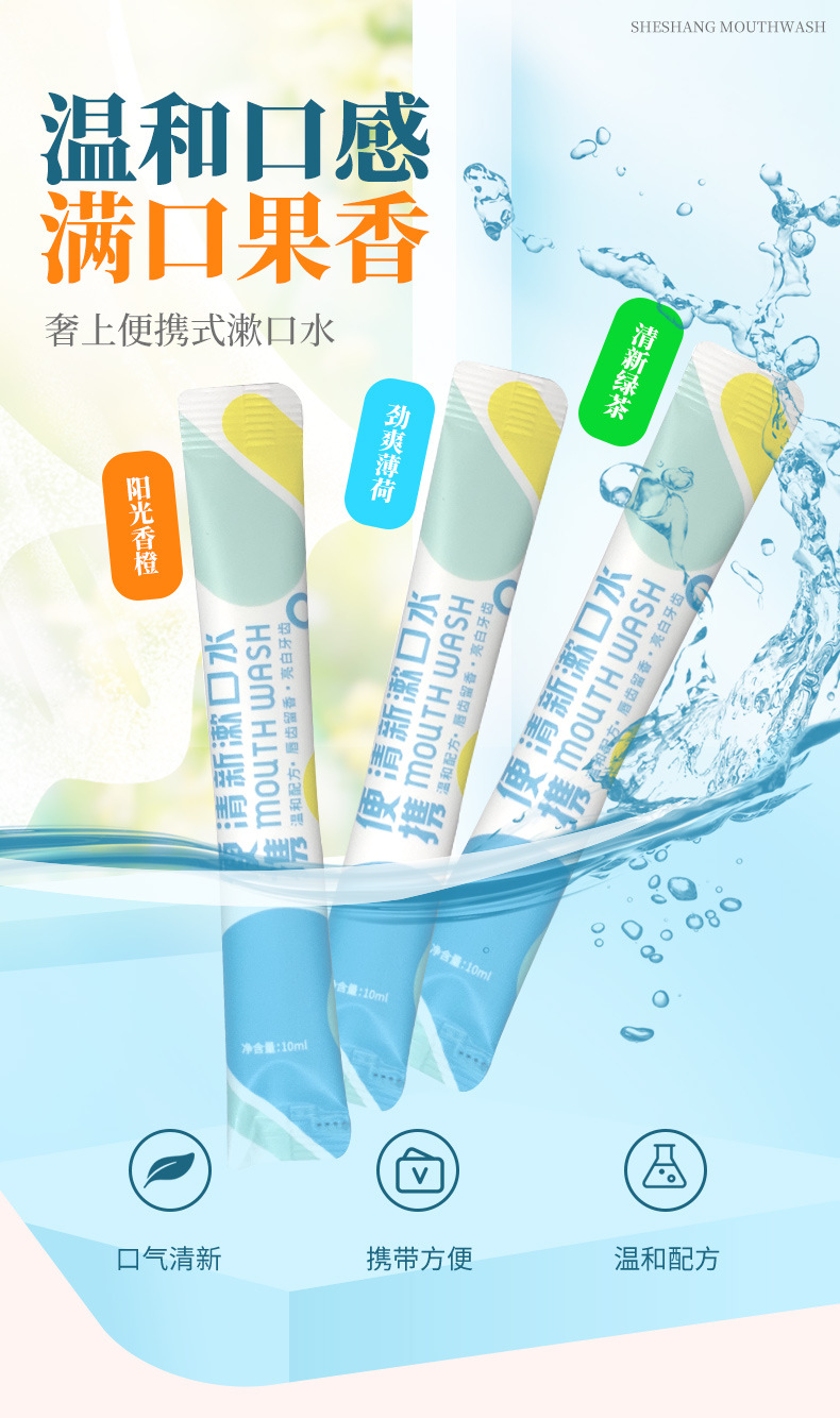 Роскошное портативное полоскание рта, индивидуальная упаковка, небольшое количество, обработка, одноразовое
