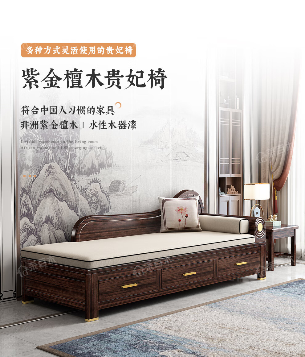 Новый китайский шезлонг из массива дерева, кресло Рохан, кресло Гуйфэй, из дерева цзинь, маленькая квартира, зен-софа с хранением
