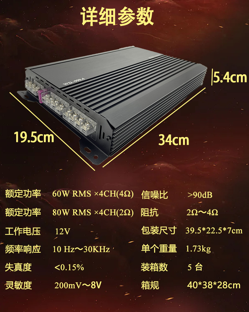 Прямые продажи 4-канального высокомощного автомобильного усилителя 12V, 9900W