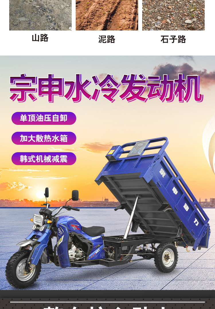 Бензиновый трицикл, трехколесное транспортное средство, бытовое сельскохозяйственное водяное охлаждение, экспортное качество, можно зарегистрировать как боковой трицикл